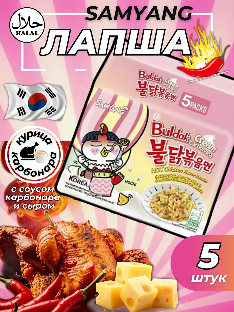 Please note! Samyang Korean noodles are SPICY! If you love spicy food, you must try Samyang's fiery noodles (aka hot chicken ramen) at least once. Samyang's spicy chicken noodles in carbonara sauce are a ready-to-eat dish that harmoniously blends the traditions of Korean and Italian cuisine. This original combination will appeal to lovers of vibrant new dishes. It's a true challenge for gourmets. Samyang was founded in 1961 and for over 50 years has earned the love, respect, and trust of not only Koreans but also many people around the world. During the famine of the 1960s, the company's delicious instant ramen helped many people survive in the country and became the second most popular food product after rice. Samyang's ready-to-eat noodles and other products undergo mandatory certification according to international standards KOLAS, ISO 22000, and Halal. They consistently boast impeccable quality and allow you to expand your menu to include authentic and nutritious Korean food. The ability to instantly provide yourself with a large, filling lunch will be especially valuable for office workers, as it allows you to save time and enjoy a delicious meal during your break.