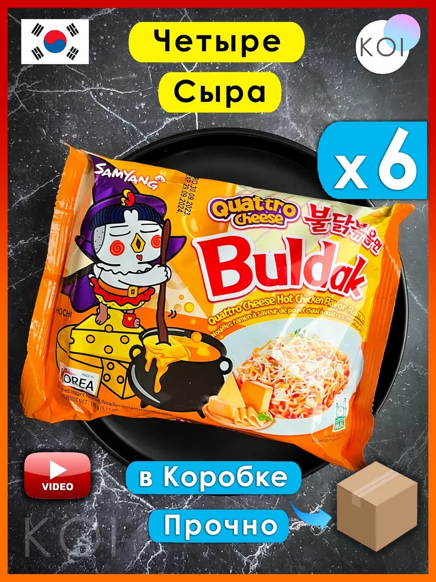 Набор 6 шт. вкус Четыре Сыра - Quattro Cheese корейская острая лапша Samyang Buldak - премиум рамен со вкусом курицы.