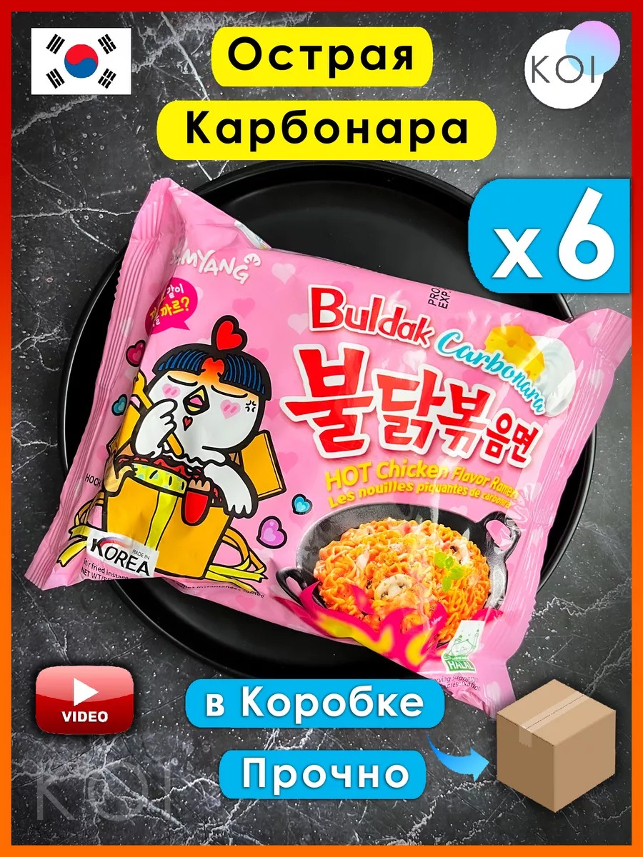 Набор 6 шт. вкус Карбонара Острая - Carbonara корейская острая лапша Samyang Buldak - премиум рамен со вкусом курицы.