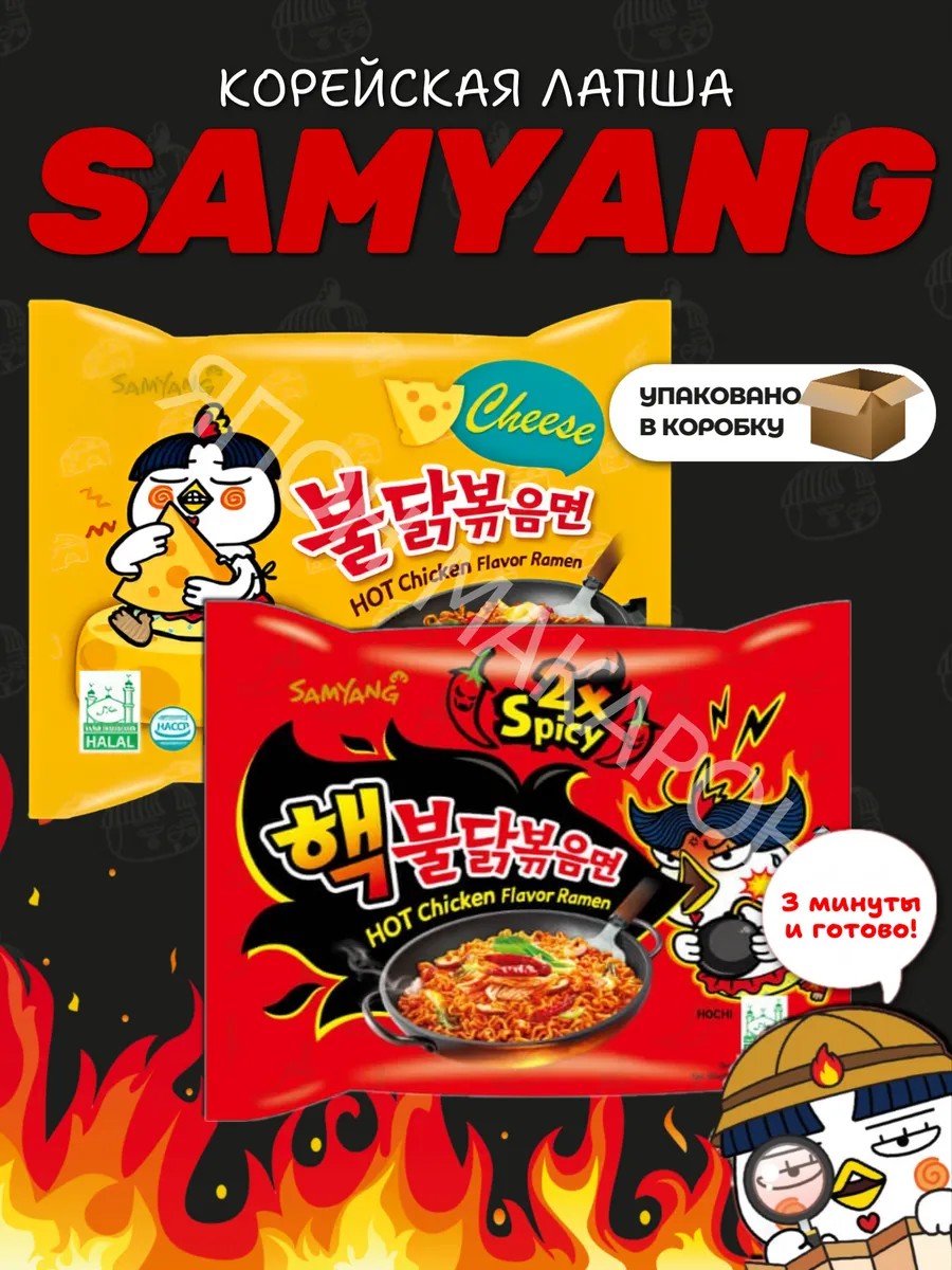 Острая лапша корейская быстрого приготовления SAMYANG позволит быстро приготовить сытное и вкусное блюдо корейской кухни всего за 3 минуты!