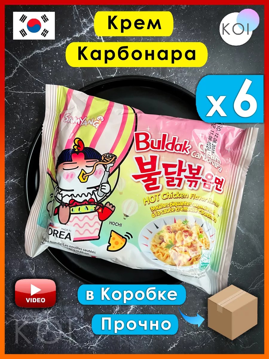 Набор 6 шт. вкус Крем Карбонара - Cream Carbonara корейская острая лапша Samyang Buldak - премиум рамен со вкусом курицы.