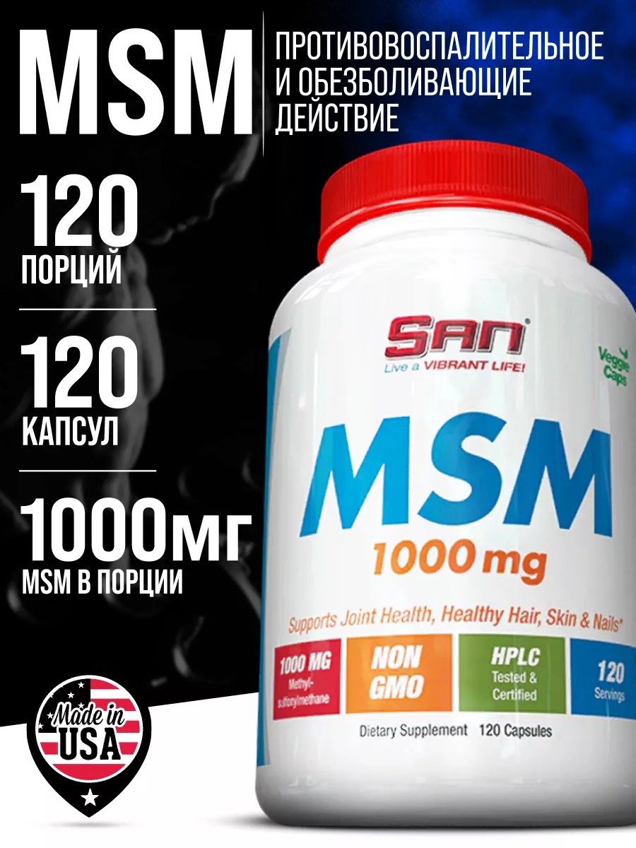 Спортивная добавка MSM от SAN поставляет биологически активную серу для поддержания организма и улучшения общего состояния. Метилсульфонилметан поможет снизить воспалительные процессы, улучшить пищеварение и повысить иммунитет. 1000 мг МСМ в одной капусле. SAN - профессиональный подход к спортивному питанию!