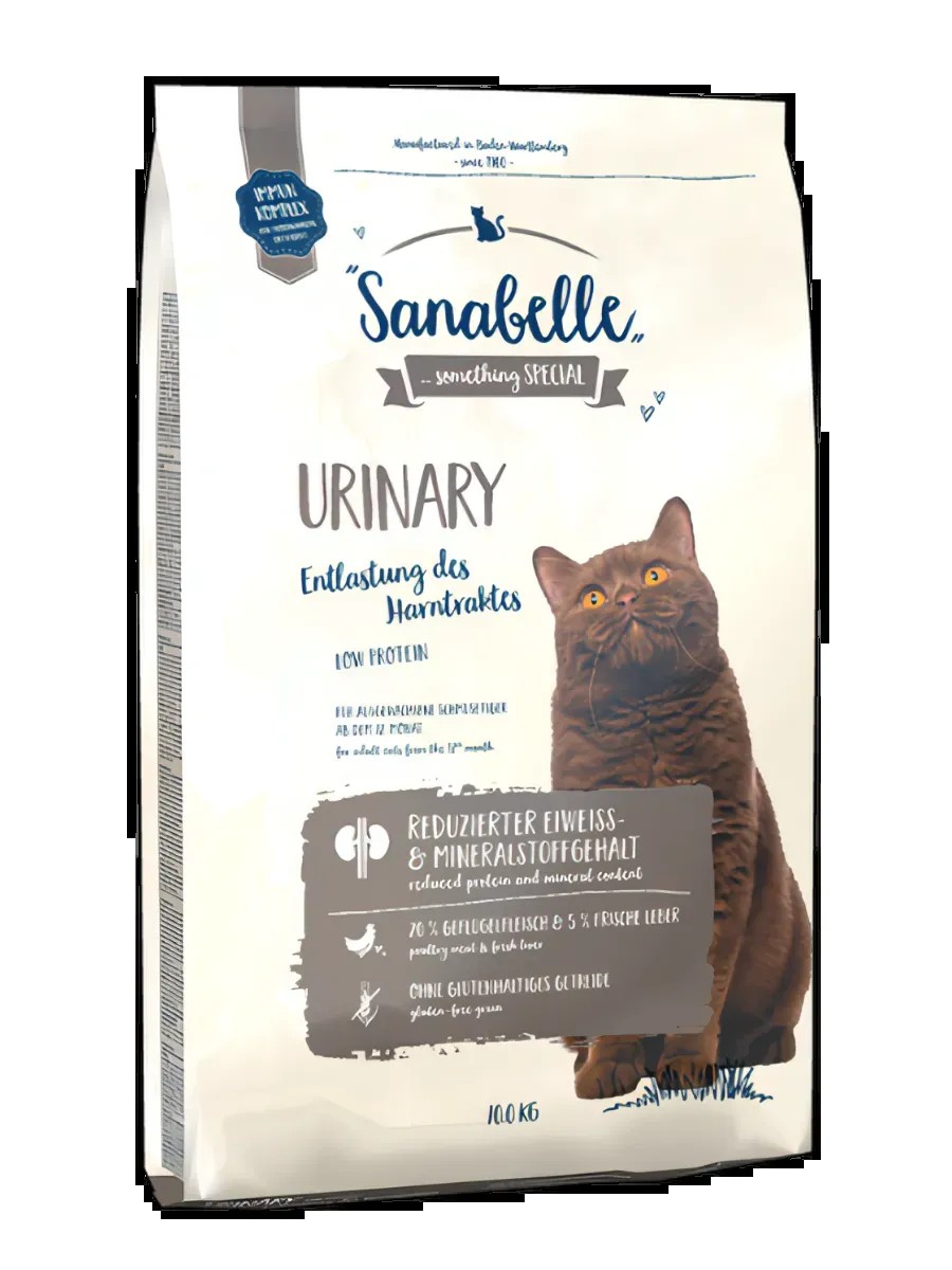 Sanabelle Urinary is a dry food specially formulated to support urinary tract health in cats. The balanced formula of Urinary 8 kg helps maintain optimal urinary pH, which helps prevent the formation of stones and crystals. This food is also enriched with natural ingredients that promote bladder and kidney health. Sanabelle Urinary 8 kg is an excellent choice for caring pet owners who want to ensure their pets' healthy and comfortable lives.