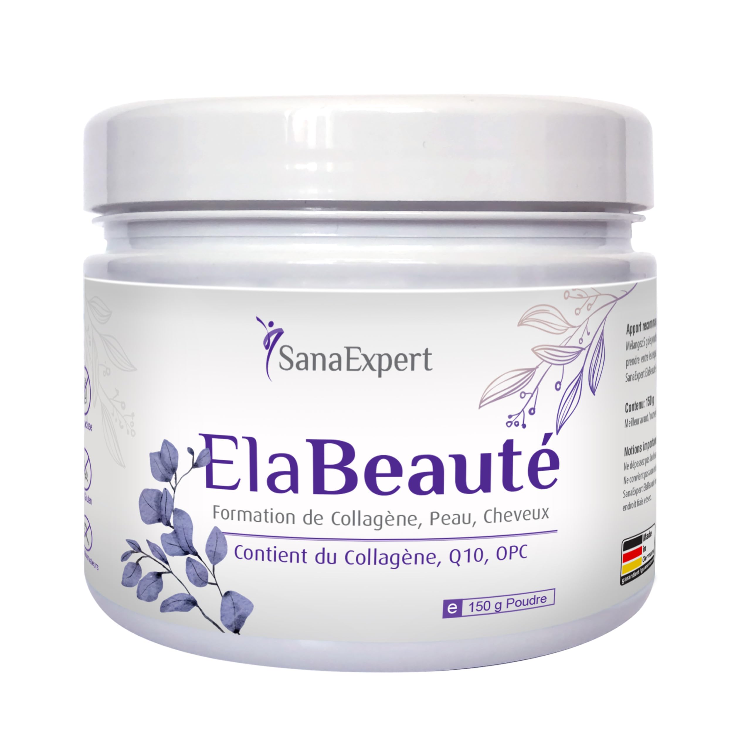 SanaExpert ElaBeauté COLLAGÈNE POUR LA BEAUTÉ DE LA PEAU avec Q10, OPC, biotine, zinc et vitamines (150 grammes). Ingrédients 100 naturels. Fabriqué en Allemagne.