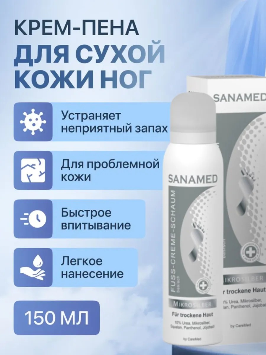 Sanamed Крем-пенка для сухой кожи ног Mikrosilber, Микросеребро