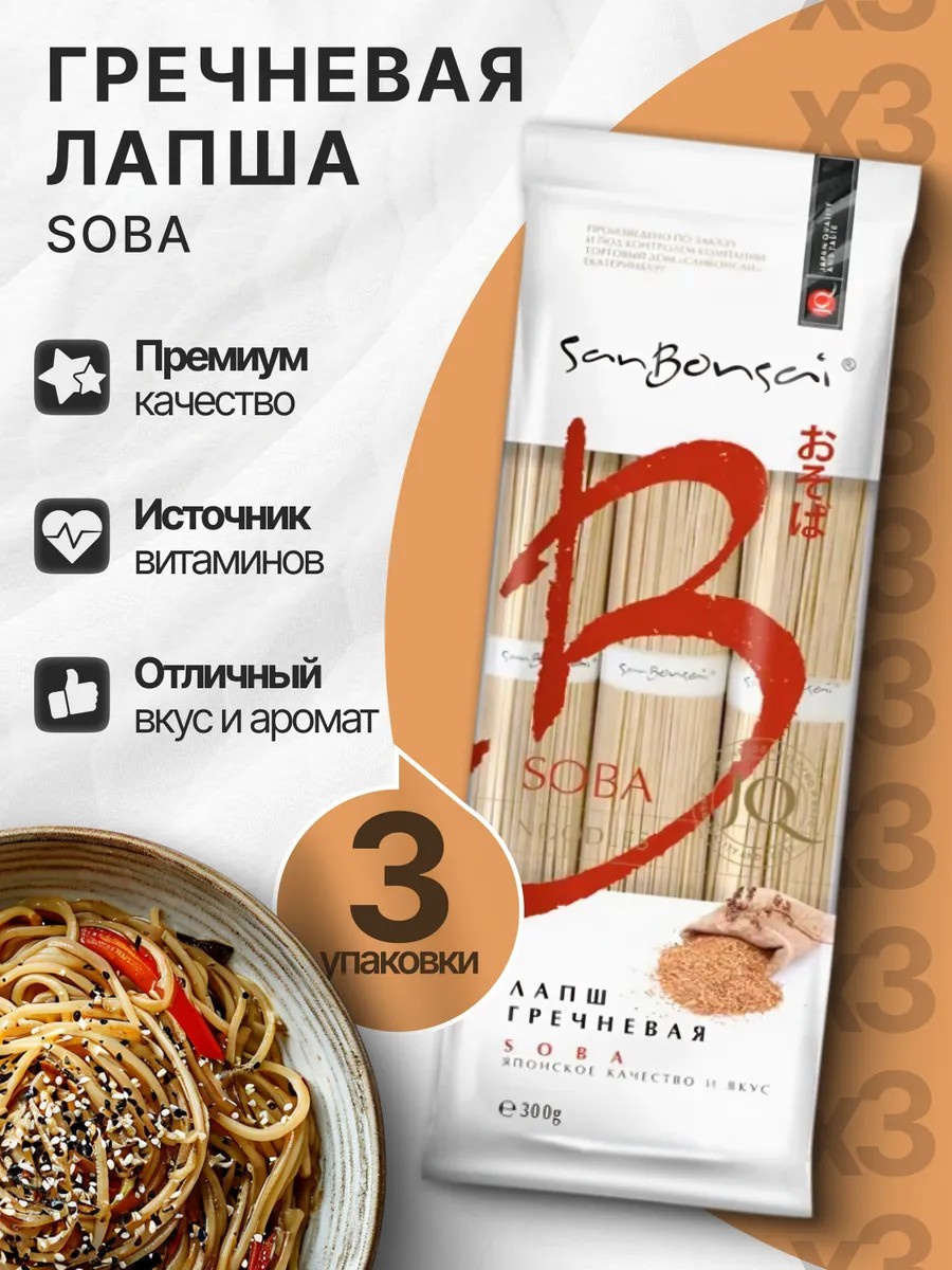 Лапша гречневая Соба быстрого приготовления 3шт по 300г