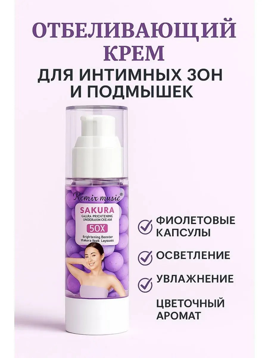 SAKURA отбеливающий крем для интимных зон и подмышек с увлажняющими капсулами 30 г