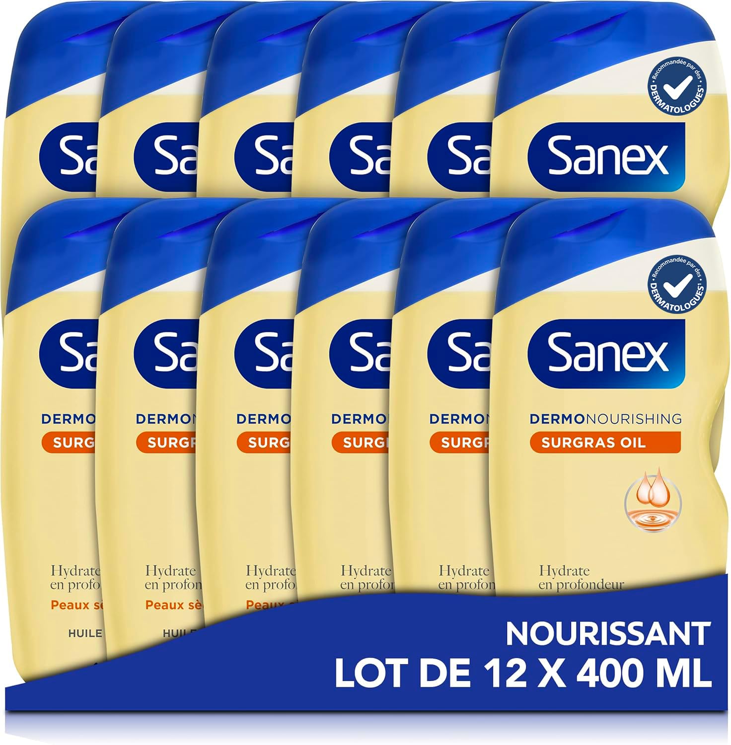 Since 1984, Sanex has been offering innovative solutions for healthy skin. Sanex products care for the epidermis daily and support the skin's natural processes by providing what it needs for maximum comfort. Dermatologically tested, Sanex formulas nourish the skin by strengthening its natural protective barrier. They are developed according to strict quality policies, minimizing the presence of allergens and unnecessary ingredients while respecting the environment. Brand recommended by dermatologists. The Sanex Dermo range includes cleansing products with a high-tolerance formula suitable for family use. Respecting the skin's health, it allows you to keep it clean, supple, and moisturized with ease. Brand recommended by dermatologists (shower gels and deodorants). Available in hypermarkets and supermarkets, 2022 IPSOS study, 99 dermatologists in France, 40 in Belgium.A TOUCH OF EXOTICISM EVERY DAY: With their enchanting fragrances and skin-friendly formulas, Tahiti shower gels offer you a daily olfactory journey of exoticism. RESTORES NATURAL pH: This vegan body wash oil also protects the skin's protective barrier, restores its natural pH, and is sulfate-free . Contains no sulfate-based surfactants. HYDRATES: This body wash oil preserves skin health by moisturizing it, leaving it soft, supple, and hydrated. STRONGER SKIN: Designed and developed with dermatologists, our body wash makes the whole family's skin stronger . Suitable for children 3 years and older. FOR THE WHOLE FAMILY : The high-tolerance formula of our dry skin body wash oil is suitable for the whole family . Suitable for children 3 years and older. FOR DRY SKIN: Sanex Dermo Nourishing Surgras Body Shower Oil gently cleanses and deeply moisturizes dry skin with every shower.SANEX - Dermo Nourrissante Surgras Huile Douche Corps - Pour Toute La Famille - Développée Avec Des Dermatologues - Hydrate La Peau Sèche Protège - Rend La Peau Plus Résistante - 400mL x12DESCRIPTION DU PRODUIT Depuis 1984, Sanex propose des solutions innovantes pour garder la peau saine. Les produits Sanex prennent soin de l'épiderme au quotidien et favorisent les processus cutanés naturels en apportant à la peau ce dont elle a besoin, pour un confort maximum. Testées dermatologiquement, les formules Sanex nourrissent la peau en renforçant sa barrière de protection naturelle. Elles sont élaborées selon des politiques de qualité strictes en minimisant la présence d'allergènes et de composants superflus tout en respectant l'environnement. Marque recommandée par des dermatologues. La gamme Sanex Dermo réunit des soins lavants possédant une formule haute tolérance adaptée à un usage familial. Respectant la santé de la peau, elle permet de la garder propre, souple et hydratée en toute simplicité. Marque recommandée par des dermatologues (gels douche et déodorants). En hypermarchés et supermarchés, étude 2022 IPSOS, 99 dermatologues France, 40 Belgique.UNE TOUCHE D'EXOTISME AU QUOTIDIEN : Avec leurs parfums enchanteurs et leurs formules respectueuses de la peau, les gels douche Tahiti vous offrent chaque jour un voyage olfactif dépaysant et empreint d'exotisme. RÉTABLIT LE PH NATUREL : L'huile de douche pour le corps vegan protège également la barrière protectrice de la peau, rétablit son pH naturel et est sans sulfate . Ne contient aucun surfactant à base de sulfate. HYDRATE : Cette huile de douche pour le corps préserve la santé de la peau en l'hydratant, la laissant douce, souple et hydratée. PEAU PLUS RÉSISTANTE : Conçu et développé avec des dermatologues, notre gel douche pour le corps rend la peau de toute la famille plus résistante. À partir de 3 ans. POUR TOUTE LA FAMILLE : La formule haute tolérance de notre huile de douche corps peau sèche est adaptée à toute la famille . À partir de 3 ans. POUR PEAU SÈCHE : L'huile de douche pour le corps Sanex Dermo Nourrissante Surgras nettoie en douceur et hydrate en profondeur les peaux sèches à chaque douche.