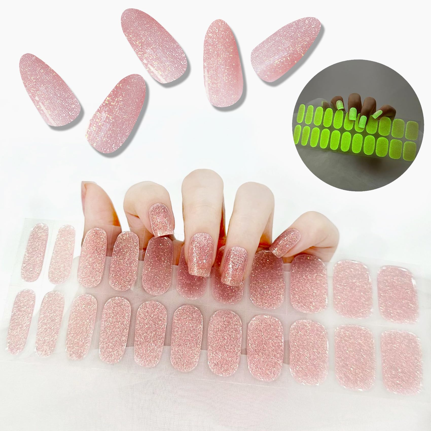 Wide Application: These French gel nail polish strips are suitable for various occasions, such as everyday shopping, festive celebrations, dream weddings, a warm Christmas, and even cozy moments at home. They also make perfect gifts for your daughter, mother, family, or friends who love nail art. 100 satisfaction guaranteed. If there is any problem with the nail stickers, please feel free to contact us. We will resolve the issue for you promptly. Easy to Apply and Remove: The nails are 60 pre-cured so they can be easily applied to the nail like clay and carefully pressed with the wooden sticks. Then, use nail scissors or a file to trim the edges. Finally, use a nail light, removing approximately 60 inches. It's easy to peel off the nail films simply lift the gel nail sticker with the tip of the wooden stick included in the packaging. Safe and durable material: No need for a top coat, as it contains base gel, color gel, and top coat all in one thanks to a unique process. The semi-cured nail stickers are made with safe, waterproof materials and no chemical formulations. Non-toxic, odorless, and won't damage your nails. Package Contents : Your set includes 22 semi-cured UV gel films, a wooden cuticle pen, a nail file, and 2 prep pads. The nail strips come in 11 different sizes that you can cut to fit your natural nails. The set is complete and exquisite, allowing you to enjoy a wonderful salon experience and radiate charm at your fingertips. Quick Method : Want a perfect gel manicure in no time? The SanFangyue DIY Gel Nail Strip Set can save you time and money. In just a few minutes, you'll have beautiful, attractive nails for less than half the salon price. No smears, no peeling, no long waits (the adhesive gel absorbs ultraviolet rays during the day and lights up at night).Vernis à Ongles UV avec Glitter Rose 22 PCS Film Gel Auto-adhésif Compresses de Vernis pour OnglesLarge application : les bandes de vernis gel français sont adaptées pour différentes occasions, telles que le shopping quotidien, les fêtes joyeuses, les mariages de rêve, Noël chaud et même le temps accueillant à la maison. Ce sont également des cadeaux parfaits pour votre fille, mère, famille ou amis qui aiment le nail art. 100 garantie de satisfaction. S'il y a un problème avec les autocollants pour ongles, n'hésitez pas à nous contacter. Nous résoudrons le problème pour vous à temps. Facile à régler et à enlever : les ongles sont pré-soignés à 60 afin qu'ils puissent être facilement appliqués sur l'ongle comme une argile et soigneusement pressés avec les bâtons en bois, puis utilisez un ciseaux à ongles ou une lime pour couper les bords. Enfin, utilisez la lumière du clou en prenant environ 60 pouces. Il est facile de décoller les films à ongles, il suffit de soulever l'autocollant pour ongles en gel avec la pointe du bâton en bois dans l'emballage. Matériau sûr et durable : plus besoin de top coat, car il contient du gel de base, du gel couleur et du top coat en un grâce à un processus unique. Les autocollants semi-soignés pour ongles sont fabriqués avec des matériaux sûrs et imperméables sans formulations chimiques. Non toxique, inodore et n'abîme pas les ongles. Contenu du colis : votre lot comprend 22 films UV semi-durcis en gel, un stylo cuticule en bois et une lime à ongles et 2 pastilles de préparation. Bandes à ongles en 11 tailles différentes que vous pouvez couper pour s'adapter à vos ongles naturels. L'ensemble est complet et exquis, vous permettant de profiter d'une merveilleuse expérience en salon et irradier le charme à portée de main. Méthode rapide : vous voulez une manucure gel parfaite en un rien de temps ? SanFangyue DIY Set de bandes à ongles en gel peut économiser du temps et de l'argent. En quelques minutes, vous obtiendrez de beaux ongles attrayants pour moins de la moitié du prix du salon. Pas de bavures, pas d'épluchage, pas de longues attentes (le gel adhésif absorbe les rayons ultraviolets pendant la journée et s'allume la nuit).