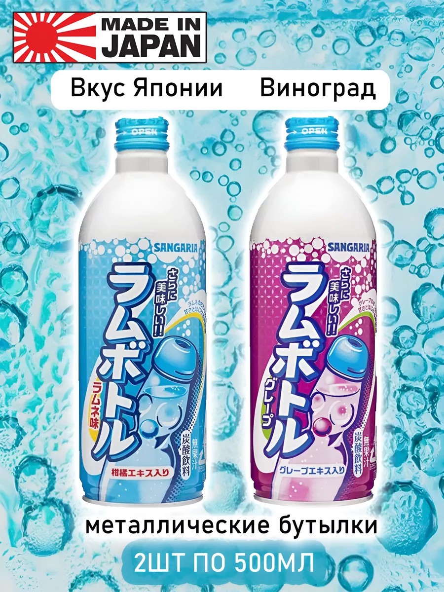 Газированные напитки Sangaria Ramune Рамунэ Вкус Японии представляют собой японское газированное виноградное удовольствие. Они выпускаются в удобной упаковке - 2 штуки по 500 мл каждая. Этот напиток придется по вкусу всем любителям сладких газировок и японской культуры.