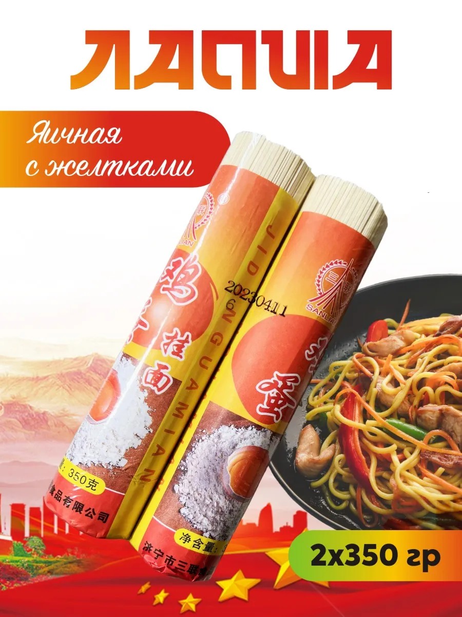 Яичная лапша SANLIAN состоит из двух упаковок по 350 гр. Прямая яичная лапша толщиной 1 мм.