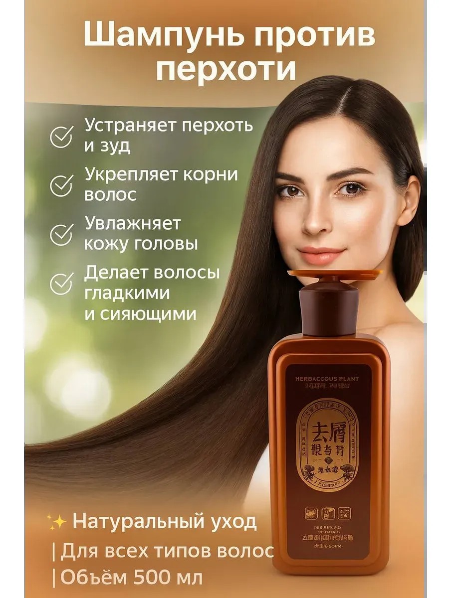 Anti-dandruff shampoo (500 ml) is an effective treatment for healthy hair and scalp, formulated with natural plant extracts.