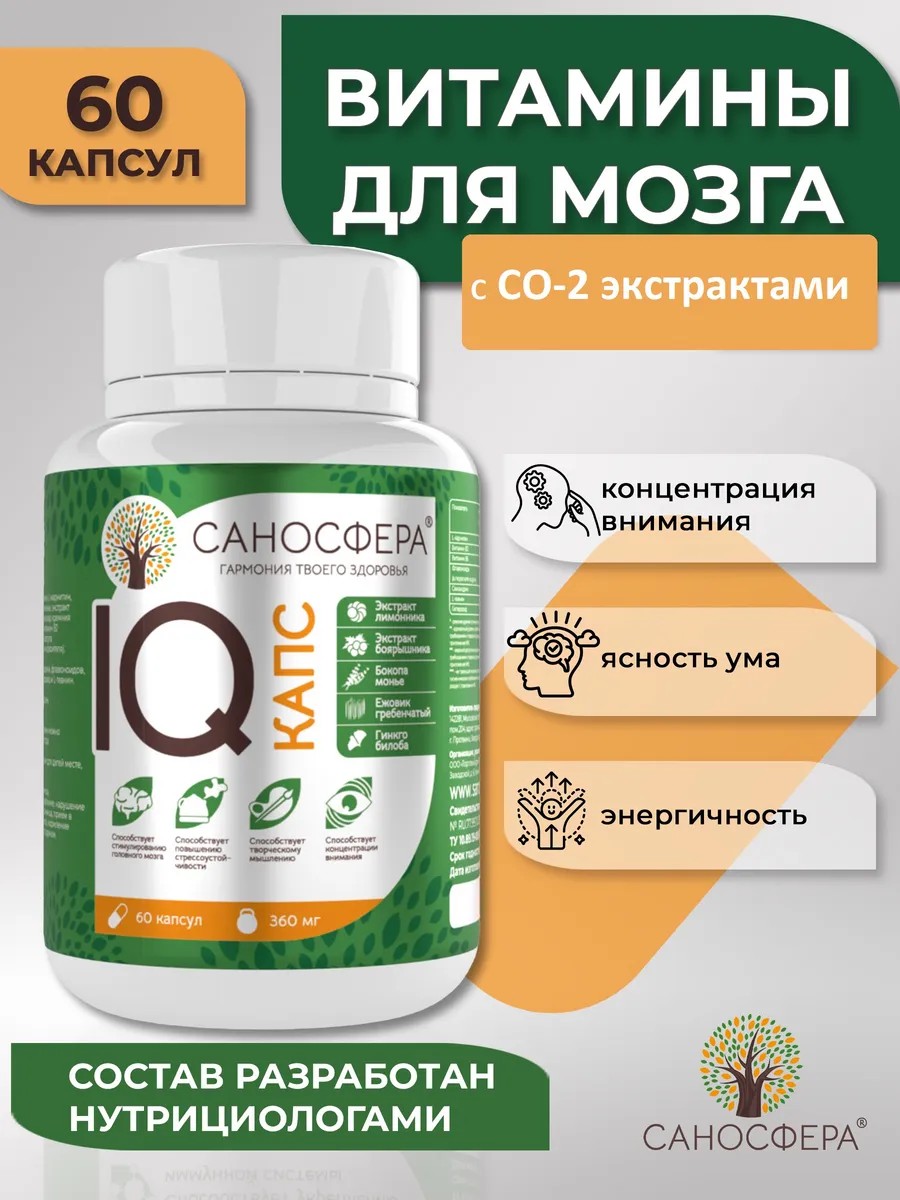 Саносфера Ноотроп для мозга и памяти с гинкго билоба IQ