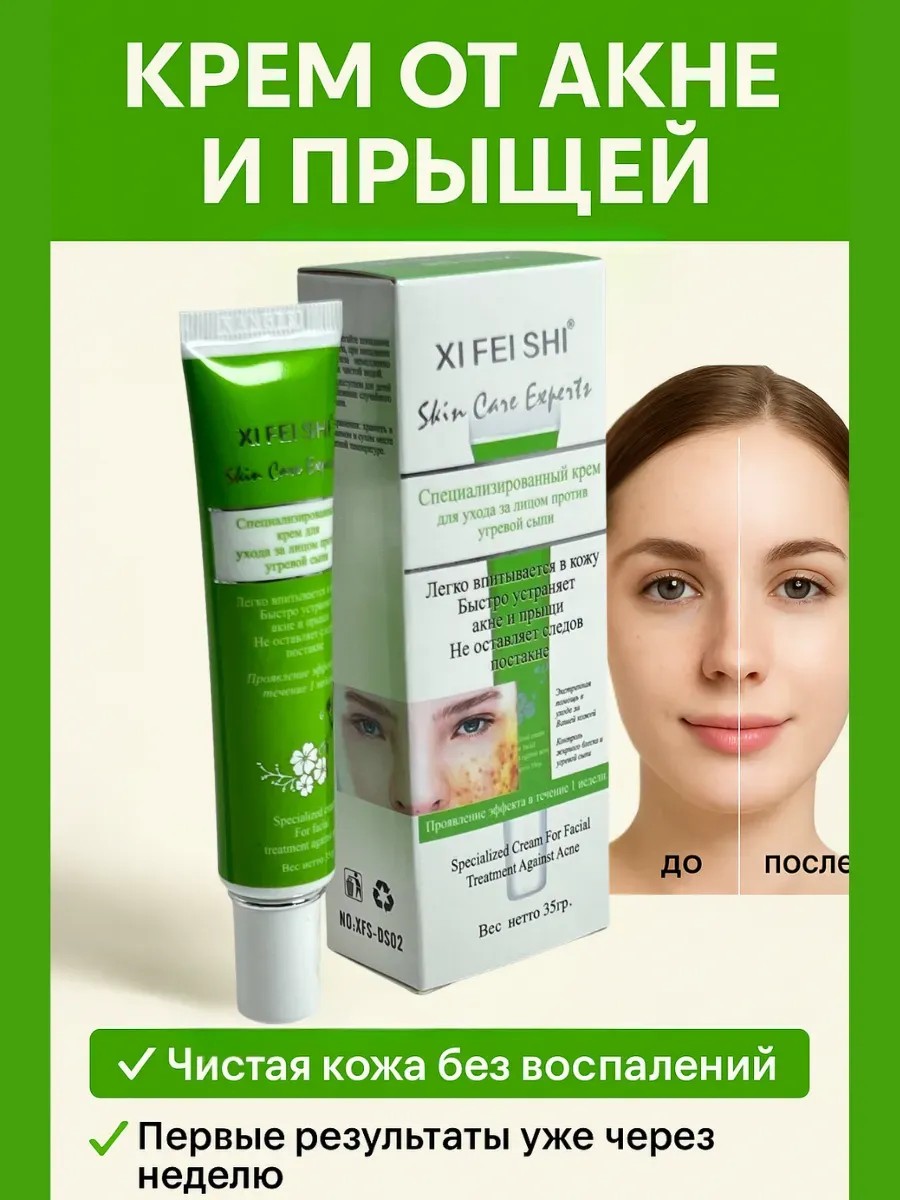 Крем от акне и прыщей — это современное средство для ухода за кожей лица, которое разработано специально для тех, кто сталкивается с проблемами акне, угревой сыпи, воспалений и постакне. Формула сочетает активные компоненты, которые глубоко проникают в поры, устраняют бактерии, вызывающие воспаления, регулируют работу сальных желёз и способствуют скорейшему восстановлению кожи. Крем отличается лёгкой текстурой, быстро впитывается, не оставляет жирности и липкости, подходит для ежедневного применения.