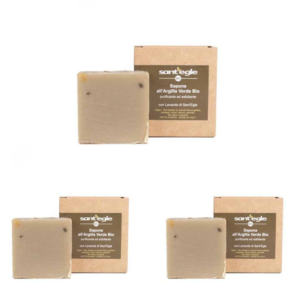 Sant'Egle Organic Solid Soap with Green Clay, Purifying and Exfoliating with Lavender INGREDIENTS Olea Europaea Fruit Oil, Cocos Nucifera Oil, Aqua, Sodium Hydroxide, Ricinus Communis Seed Oil, Helianthus Annuus Seed Oil , Prunus Amygdalus Dulcis Oil, Butyrospermum Parkii Butter , Citric Acid, Solum Follonum, Lavandula Angustifolia Flower Oil SAFETY WARNING For external use only. Avoid contact with eyes. Keep out of reach of children. If swallowed, contact a doctor. See more