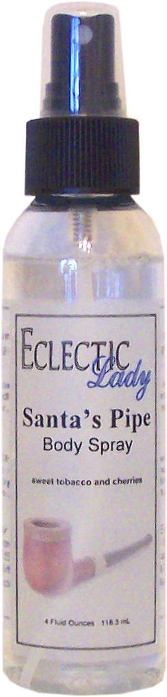 Santa's Pipe is a warm combination of cherrywood, raspberry, vanilla, and tobacco. This fragrance is phthalate free. PARABEN-FREE - We take pride in selecting our ingredients, which is why our body spray is free from parabens. HANDCRAFTED - Each bottle of our body spray is handcrafted in the USA, ensuring the highest quality and attention to detail. ORIGINAL STRENGTH FRAGRANCE - Our classic body spray formula for a softer fragrance.DOUBLE STRENGTH FRAGRANCE - Our Double Strength formula contains double the fragrance of our original body sprays for people who prefer a stronger and more long-lasting scent. HYDRATING MIST - Made with vegetable glycerin, a humectant, our body sprays help attract moisture to your skin keeping it hydrated and refreshed.