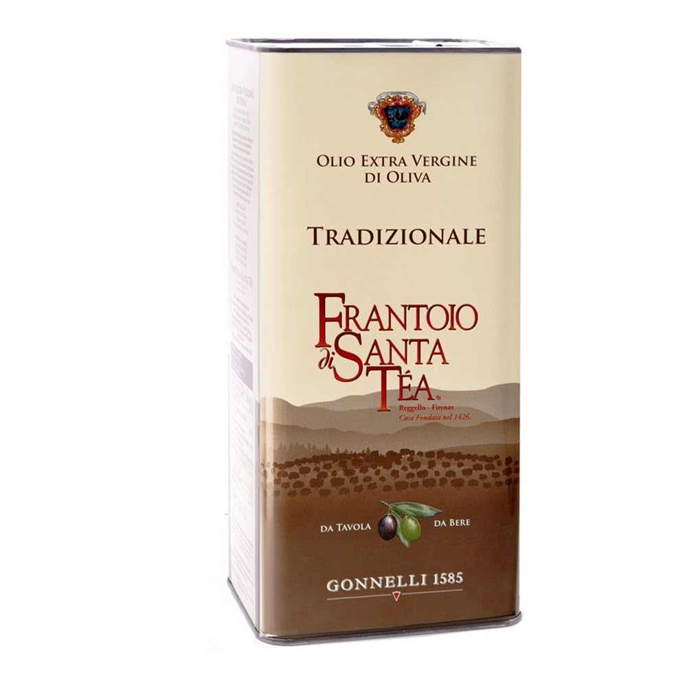 This traditional olive oil is made from a blend of Frantoio, Moraloio, Lecciono, Pendolino, and Gentile olives. They are harvested from October to December in Tuscany and surrounding areas. The green oil with golden highlights has a delicate, fruity aroma and a rich, harmonious taste with notes of ripe fruit. The olive groves are located near Florence in the Reggello region. In addition to using its own olives, the producer also purchases top-quality olives from neighboring groves. Piero Gonnelli ensures the superior quality of the olives, whether harvested by hand or machine, through a short journey from harvest to the oil mill, and oversees the careful finishing process at the mill. Ingredients: Extra virgin olive oil. Extra virgin olive oil – First quality – obtained directly from olives using exclusively mechanical processes. Store away from light and heat. Made and filled in Italy. Nutritional values per 100g 100ml: Energy: 807 kcal 3378 kJ, Fat: 91.3g, of which saturates: 13.7g, Carbohydrate: 0g, of which sugars: 0g, Protein: 0g, Salt: 0g. INGREDIENTS Extra virgin olive oil. Extra virgin olive oil – First quality – obtained directly from olives exclusively using mechanical processes. Store away from light and heat. Product made and packaged in Italy.Tradizionale - Huile d'olive extra vierge Santa Tea Gonnelli - 5 lDESCRIPTION DU PRODUIT DESCRIPTION DU PRODUIT L'huile d'olive traditionnelle est obtenue à partir d'un mélange de Frantoio, Moraloio, Lecciono, Pendolino et Gentile olive. Elles sont récoltées d'octobre à décembre dans la région de Toscane et les régions voisines. L'huile verte aux reflets dorés diffuse un parfum fruité et délicat et a un goût riche et harmonieux avec des notes de fruits mûres. L'olivier se trouve près de Florence dans les eaux sans Reggello. En plus de l'utilisation de ses propres olives, le produit à l'huile achète des produits de qualité supérieure des oliviers voisins. Piero Gonnelli veille à la qualité supérieure des olives récoltées à la main ou à la machine, sur un court chemin de la récolte au moulin à huile et sur la finition soignée dans le moulin à olive. Ingrédients : huile d'olive vierge extra. Huile d'olive vierge extra – Première qualité – directement obtenue à partir d'olives exclusivement avec des procédés mécaniques. Conserver à l'abri de la lumière et de la chaleur. Fabriqué et rempli en Italie. Valeurs nutritionnelles pour 100 g 100 ml : valeur énergétique : 807 kcal 3378 kJ, matières grasses : 91,3 g, dont acides gras saturés : 13,7 g, glucides : 0 g, dont sucre : 0 g, protéines : 0 g, sel : 0 g. INGRÉDIENTS Huile d'olive vierge extra. Huile d'olive vierge extra – Première qualité – directement obtenue à partir d'olives exclusivement avec des procédés mécaniques. Conserver à l'abri de la lumière et de la chaleur. Produit fabriqué et conditionné en Italie.