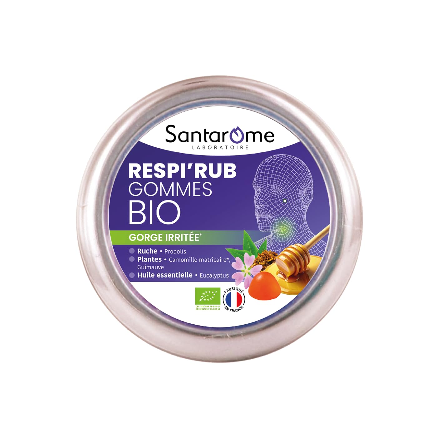 Sore throat? Discover the Respi'ruba chewing gum based on propolis, marshmallow, eucalyptus essential oil and chamomile to soothe irritated throat and combat winter complaints. A highly dosed formula of: propolis, a real natural shield that bees use in their hive as a protective barrier against external influences. - Eucalyptus essential oil that soothes the airways - Honey and Marshmallow that soothe the throat. This product is organic and made in France INGREDIENTS INGREDIENTS (for 5 gums): acacia gum , agave syrup , Propolis extract (30 mg), glycerin macerates [water, glycerin , alcohol , blackcurrant leaf bud (Ribes nigrum L. )(10 mg), young Eglantier sprout (Rosa canina L. )(10 mg), glutinous ulne bud (Alnus glutinosa (L.) Gaertn. )(10 mg)], dry extract of marshmallow (root) (Althaea officinalis L. )(25 mg), essential oil of eucalyptus bulb (aerial parts (Eucalyptus globulus Labill. )(10mg), dry extract of Matricaria chamomile (flower) (Matricaria chamomilla L.) (5 mg) Matrix chamomile helps clear the respiratory tract and soothes the throat. SAFETY WARNING Keep out of the reach of children. The first use should be done in the air and not directly into the nose or on a third person. Use in infants, the elderly, bedridden and or disabled: lying on the side, head slightly raised is recommended. Never perform a nasal wash with your head tilted back to avoid misdirection or swallowing. If symptoms persist for more than 4 days, consult the advice of your doctor or pharmacist. If the housing is damaged, do not use the product due to the risk of contamination. Do not use if expiration date has passed. If prescribed by a doctor of a medicine for nasal application, our sprays should be used before use and not after. Patients with hypertension or renal insufficiency should take salt intake into account in their daily ration. Can be used safely in pregnant women. See moreEnvironmentally friendly and suitable for everyone: Without colourants, preservatives, artificial flavors and not tested on animals. Suitable for vegetarian diet, gluten-free, lactose-free. Nature-friendly and ECOCERT certified. Made in France: Made in France by experts in their field, our organic propolis erasers are subject to strict controls that guarantee you impeccable quality. EASY TO TAKE: 5 chewing or sucking gums per day. 100 organic formula. Our formula is heavily dosed in propolis, known for its antibacterial power! Matricaria chamomile soothes the throat and contributes to breathing comfort. Formula supplemented with marshmallow and eucalyptus essential oil. Soothes the throat. Soothes the throat and strengthens the immune system. Ideal for those who have a sensitive or irritated throat and want protection against winter complaints!.Santarome Bio - Ademhalingsrubber Bio - geïrriteerde keel - propolis - 45 kauwgom - Frankrijk Keelpijn? Ontdek de Respi'ruba kauwgom op basis van propolis, marshmallow, etherische olie van eucalyptus en kamille om geïrriteerde keel te kalmeren en winterklachten te bestrijden Een sterk gedoseerde formule van: propolis, een echt natuurlijk schild dat bijen in hun bijenkorf gebruiken als een beschermende barrière tegen invloeden van buitenaf. - Etherische olie van eucalyptus die de luchtwegen verzacht - Honing en Marshmallow die de keel kalmeren. Dit product is biologisch en gemaakt in Frankrijk INGREDIËNTEN INGREDIËNTEN (voor 5 gom): acaciagom , agavesiroop , Propolis-extract (30 mg), glycerinemaceraten [water, glycerine , alcohol , zwarte bessenbladknop (Ribes nigrum L. )(10 mg), jonge spruit van Eglantier (Rosa canina L. )(10 mg), glutineuze ulne knop (Alnus glutinosa (L.) Gaertn. )(10 mg)], droog extract van marshmallow (wortel) (Althaea officinalis L. )(25 mg), etherische olie van eucalyptus bolvorm (bovengrondse delen (Eucalyptus globulus Labill. )(10mg), droog extract van Matricaria kamille (bloem) (Matricaria chamomilla L.) (5 mg) Matrix kamille helpt bij het vrijkomen van de luchtwegen en kalmeert de keel. VEILIGHEIDSWAARSCHUWING Buiten het bereik van kinderen bewaren. Het eerste gebruik moet in de lucht worden gedaan en niet direct in de neus of bij een derde persoon. Gebruik bij zuigelingen, ouderen, bedlegerige en of gehandicapten: liggend op de zijkant, licht opgeheven hoofd wordt aanbevolen. Voer nooit een neuswas uit met je hoofd naar achteren gebogen om een verkeerde weg of inslikken te voorkomen. Als de symptomen langer dan 4 dagen aanhouden, raadpleeg dan het advies van uw arts of apotheker. Als de behuizing beschadigd is, gebruik het product niet vanwege het risico van verontreiniging. Niet gebruiken als de vervaldatum is verstreken. Indien voorgeschreven door een arts van een geneesmiddel voor nasale toepassing, moeten onze sprays worden gebruikt voor gebruik en niet erna. Patiënten met hypertensie of nierinsufficiëntie moeten rekening houden met de zoutinname in hun dagelijkse rantsoen. Kan veilig worden gebruikt bij zwangere vrouwen. Meer bekijkenMilieuvriendelijk en geschikt voor iedereen: Zonder kleurstoffen, conserveringsmiddelen, kunstmatige smaakstoffen en niet getest op dieren. Geschikt voor vegetarische voeding, glutenvrij, lactosevrij. Natuurvriendelijk en ECOCERT-gecertificeerd. Gemaakt in Frankrijk: gemaakt in Frankrijk door experts op hun gebied, onze biologische propolis gummen zijn onderworpen aan strenge controles die je een onberispelijke kwaliteit garanderen. GEMAKKELIJK TE NEMEN: 5 kauw- of zuiggummen per dag. 100 biologische formule. Onze formule is zwaar gedoseerd in propolis, bekend om zijn antibacteriële kracht! Matricaria kamille kalmeert de keel en draagt bij aan het ademhalingscomfort. Formule aangevuld met marshmallow en etherische olie van eucalyptus. Kalmeert de keel. Kalmeert de keel en versterkt het immuunsysteem. Ideaal voor degenen die een gevoelige of geïrriteerde keel hebben en bescherming willen tegen winterklachten!.