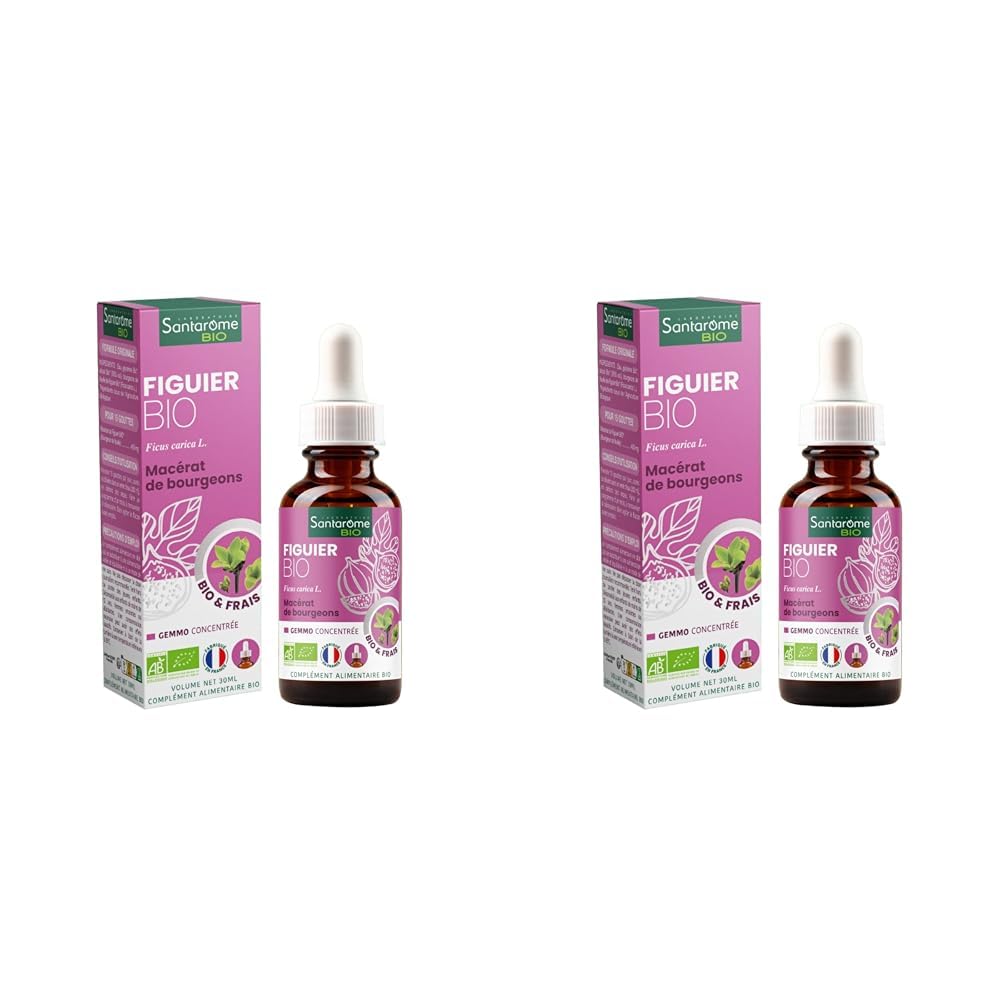 Santarome Bio - Figuier Bio - Macérat de bourgeons - Bourgeon de Figuier Bio - Bourgeon Frais - Gémmothérapie - Complément alimentaire anti stress - Flacon de 30 ml - France (Lot de 2)