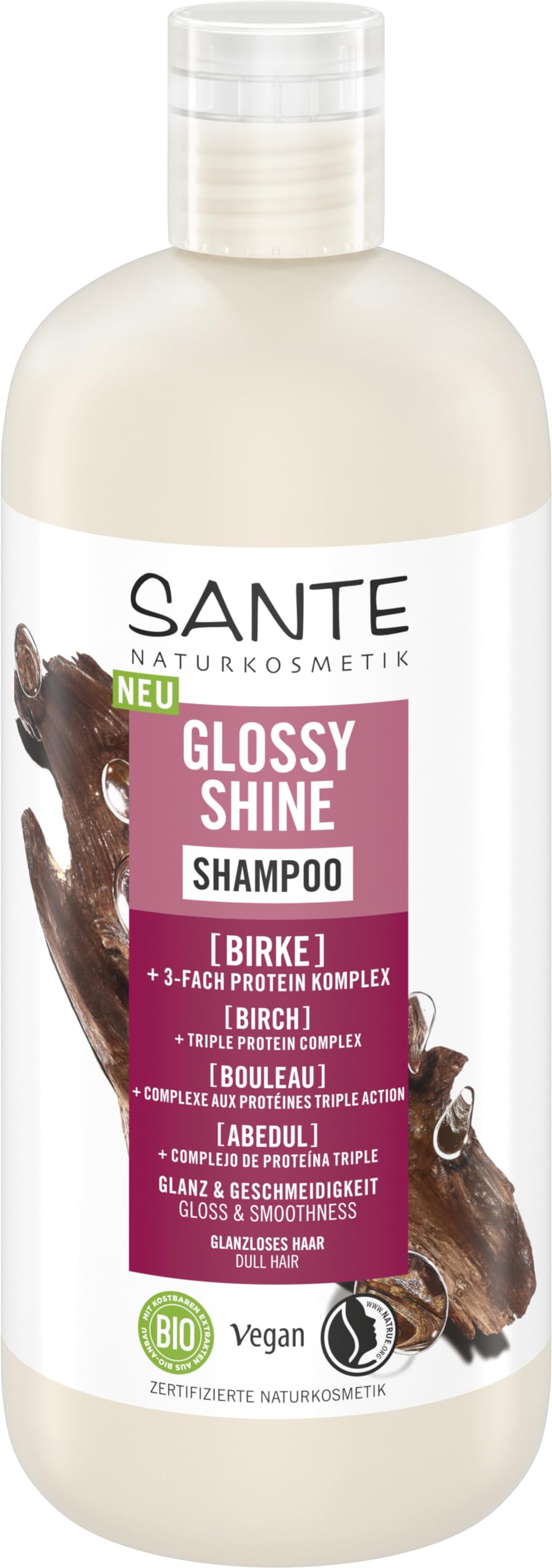 SANTE Naturkosmetik Glossy Shine Shampoo with Organic Birch Leaf Extract + Triple-Layer Protein Complex Vegan and Moisturizing Care for More Shine and Softness with