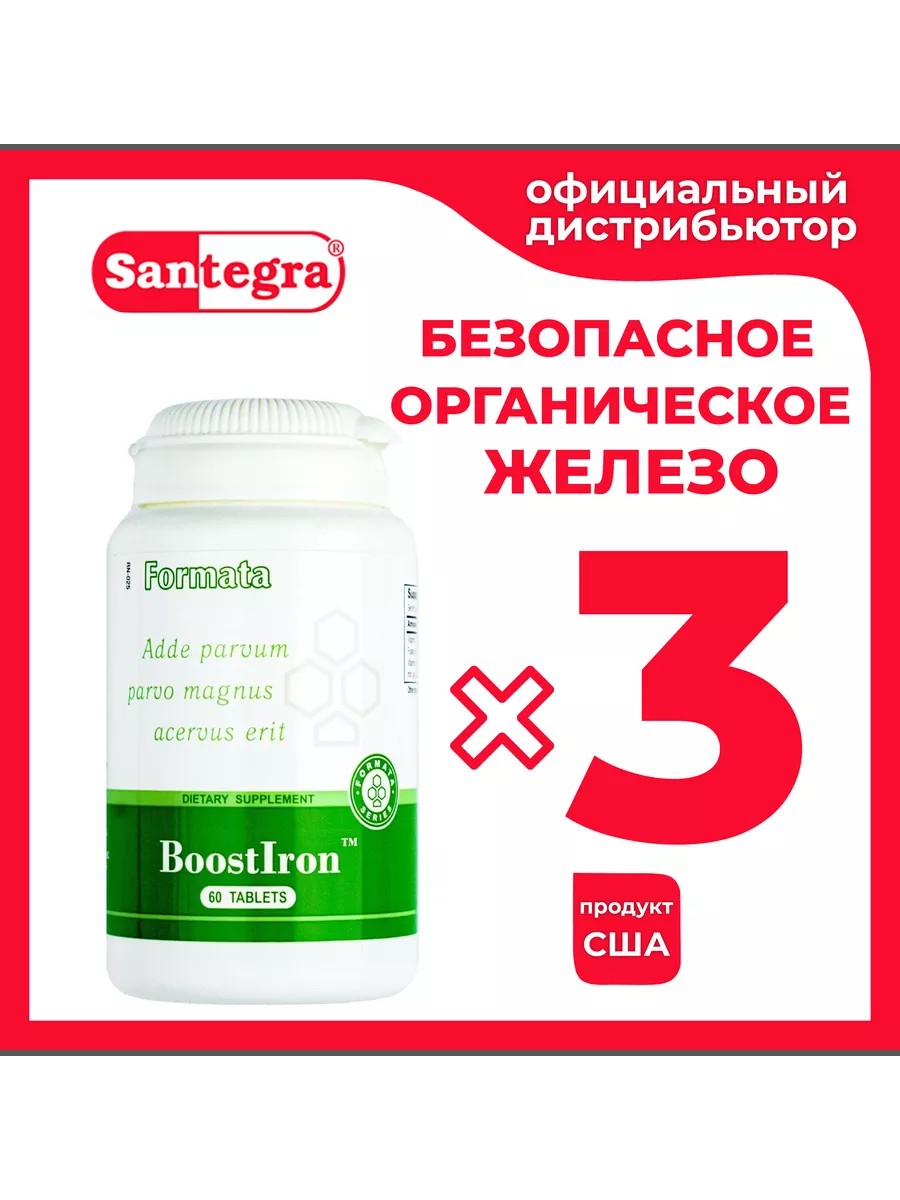 BoostIron - продукт компании Santegra, созданный для профилактики и лечения железодефицитной анемии; содержит 10 мг железа в форме карбонильного железа, а также витамины С, В12 и фолиевую кислоту, необходимые для его более полного усвоения.