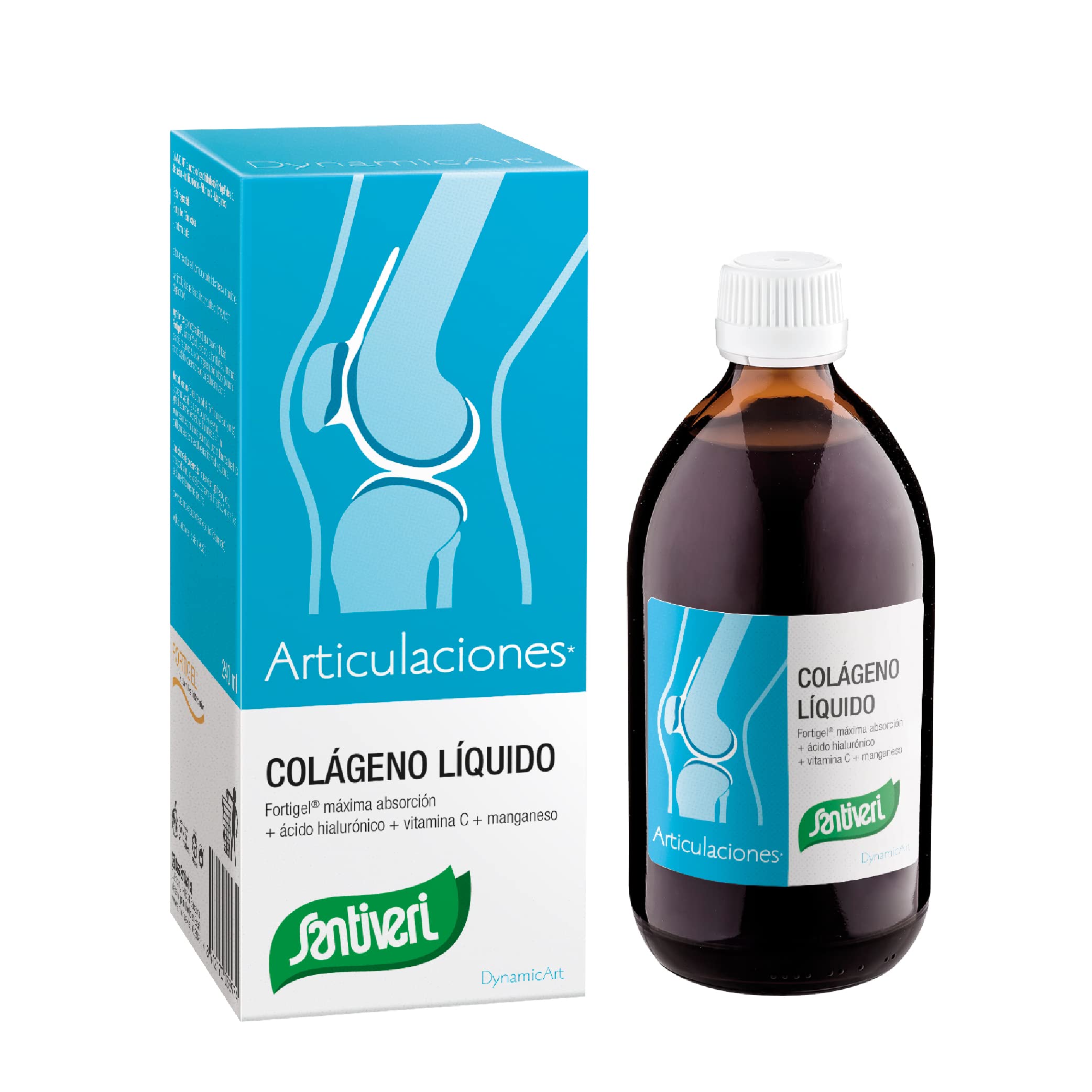 SANTIVERI Dynamic Art Liquid Collagen is a food supplement based on hydrolyzed collagen combined with hyaluronic acid, vitamin C, and manganese. Its Fortigel liquid formula ensures maximum absorption. Contains water (Fortigel), vitamin C (L-ascorbic acid), hyaluronic acid, concentrated aronia acid (phosphoric acid), and manganese sulfate sweetener (sucralose). Ingredients: glycerin (stabilizer), water, hydrolyzed collagen (Fortigel ), vitamin C (L-ascorbic acid), hyaluronic acid, concentrated aronia acid, manganese (manganese sulfate), phosphoric acid (acidifier), potassium sorbate (preservative), flavorings. See more INGREDIENTS Glycerin (stabilizer), water, hydrolyzed collagen (Fortigel ), vitamin C (L-ascorbic acid), hyaluronic acid, aronia concentrate, manganese (manganese sulfate), phosphoric acid (acidulant), potassium sorbate (preservative), flavorings. DIRECTIONS Take one 15 ml measure (one and a half tablespoons) diluted in a glass of water, before or during breakfast. Shake the bottle before each use. One tablespoon 10 ml. SAFETY WARNING Do not exceed the recommended daily dose. Food supplements should not be used as a substitute for a varied and balanced diet. Keep out of reach of children. See more136 years of history: SANTIVERI is a pioneering company in Spain in the field of natural and dietary supplements. Founded in 1885 by its creator, Jaime SANTIVERI Piniés, a pioneer and driving force in the trade of dietary and natural products in our country. When and how? If you are over 40, with an intense activity level and your joints are suffering. And also if you are under 40 and participate in high-impact sports. Take one 15 ml scoop (using the measuring cap) diluted in a glass of water, before or during breakfast. Pleasant taste. Ingredients per daily dose (15 ml): 5 g of hydrolyzed collagen (Fortigel), 25 mg of hyaluronic acid, 80 mg of vitamin C (100 NRV) and 2 mg of manganese (100 NRV). ( ) NRV: Nutrient Reference Values. Vitamin C contributes to collagen formation for the normal function of cartilage and bones, and manganese contributes to the normal formation of connective tissue and the maintenance of normal bones. Healthy joints! Food supplement based on hydrolyzed collagen (Fortigel), hyaluronic acid, vitamin C, and manganese. With hydrolyzed collagen (Fortigel) for maximum absorption.SANTIVERI – Collagène liquide Dynamic Art avec collagène hydrolysé Fortigel flacon avec sirop 240 mlDESCRIPTION DU PRODUIT DESCRIPTION DU PRODUIT Description du produit SANTIVERI Dynamic Art Liquid Collagen est un complément alimentaire à base de collagène hydrolysé combiné avec de l'acide hyaluronique, de la vitamine C et du manganèse. Sa formule liquide Fortigel assure une absorption maximale. Contient de l'eau (fortigel), de la vitamine C (acide L-ascorbique), de l'acide hyaluronique aronia concentré acide (acide phosphorique) édulcorant au sulfate de manganèse (sucralose). Ingrédients glycérine (stabilisant) eau, collagène hydrolysé (Fortigel ), vitamine C (acide L-ascorbique), acide hyaluronique, concentré d'aronie, manganèse (sulfate de manganèse), acide phosphorique (acidifiant), sorbate de potassium (conservateur), arômes. Voir plus INGRÉDIENTS Glycérine (stabilisateur) eau, collagène hydrolysé (Fortigel ), vitamine C (acide L-ascorbique), acide hyaluronique, concentré d'aronia, manganèse (sulfate de manganèse), acide phosphorique (acidulant), sorbate de potassium (conservateur), arômes. MODE D'EMPLOI Prendre une mesure de 15 ml (une cuillère à soupe et demie) diluée dans un verre d'eau, avant ou pendant le petit déjeuner. Agiter le flacon avant chaque prise. Une cuillère à soupe 10 ml. AVERTISSEMENT DE SÉCURITÉ Ne pas dépasser la dose journalière recommandée. Les compléments alimentaires ne doivent pas être utilisés comme substituts à un régime varié et équilibré. Tenir hors de portée des enfants. Voir plus136 ans d'histoire : SANTIVERI est une entreprise pionnière en Espagne dans le domaine naturel et de la diététique naturelle. Né en 1885 de la main de son fondateur et créateur, Jaime SANTIVERI Piniés, pionnier et moteur du commerce des produits diététiques et naturels dans notre pays. Quand et comment ? Si vous êtes un jeune de plus de 40 ans, avec une activité intense et vos articulations en souffrent. Et aussi si vous êtes un jeune de moins de 40 ans et pratiquez un sport d'impact. Prendre 1 mesure de 15 ml (avec bouchon doseur) diluée dans un verre d'eau, avant ou pendant le petit déjeuner. Goût agréable. Ingrédients par dose quotidienne (15 ml) : 5 g de collagène hydrolysé (Fortigel), 25 mg d'acide hyaluronique, 80 mg de vitamine C (100 VRN) et 2 mg de manganèse (100 VRN). ( ) VRN : valeurs de référence des nutriments. La vitamine C contribue à la formation de collagène pour le fonctionnement normal des cartilages et des os et le manganèse contribue à la formation normale du tissu conjonctif et au maintien des os dans des conditions normales. Articulations en forme ! Complément alimentaire à base de collagène hydrolysé (Fortigel), d'acide hyaluronique, de vitamine C et de manganèse. Avec collagène hydrolysé Fortigel absorption maximale.