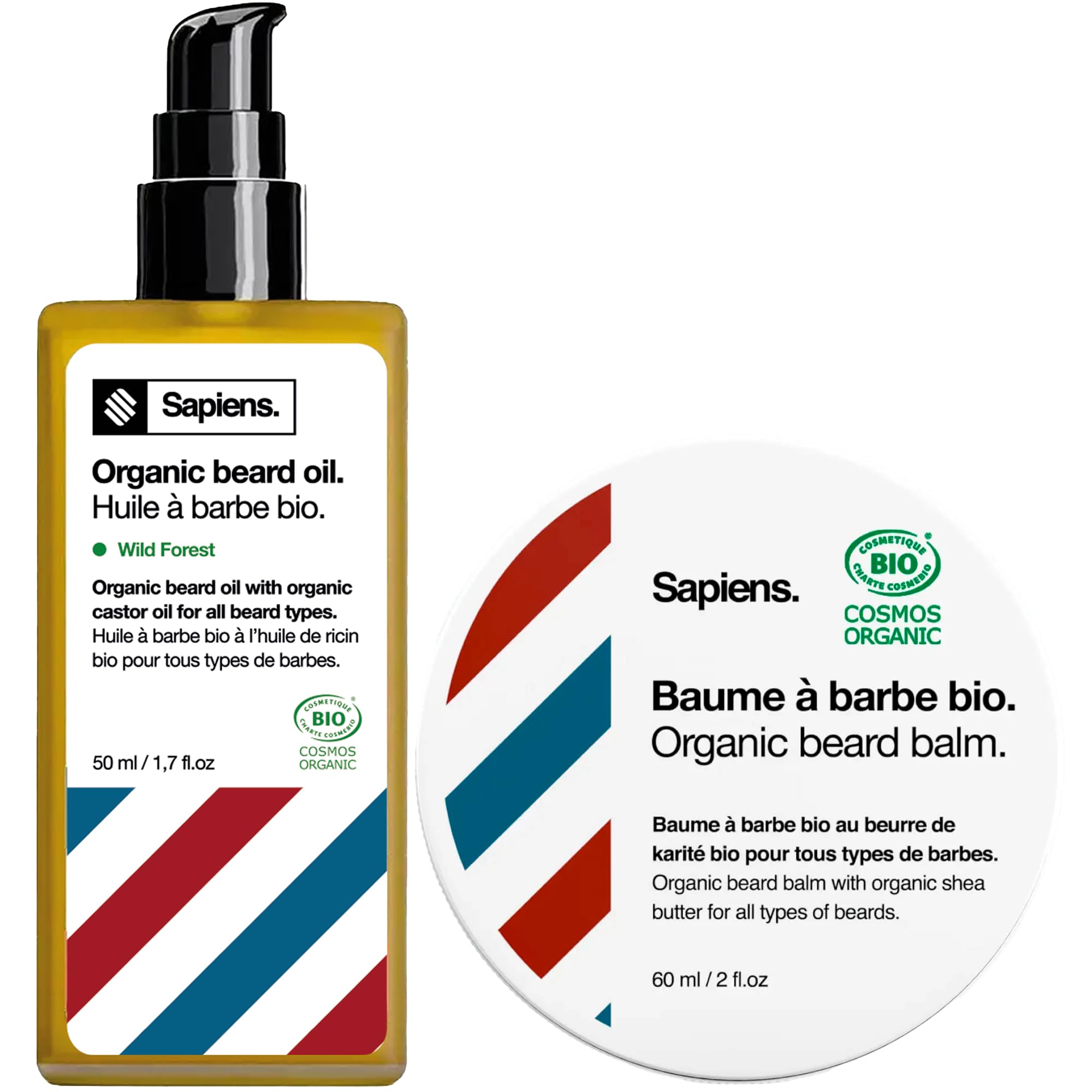 Sapiens Barbershop Organic Beard Oil Beard Balm Duo – The Ultimate Care for a Healthy and Stylish Beard Treat your beard to exceptional care with the Sapiens Barbershop Beard Oil (50 ml) and Beard Balm (60 ml) duo, designed for men who want a soft, healthy, and perfectly groomed beard. Made in France with artisanal expertise, this men's beard care set is certified organic by COSMOS ORGANIC (oil) and ECOCERT (balm), guaranteeing impeccable quality and a 100 natural composition. Composed of premium ingredients such as castor oil, jojoba oil, argan oil, and shea butter, this duo is your ally for stimulating beard growth, deeply moisturizing, and precisely controlling your styling. The organic beard oil is a concentrated source of benefits for your beard and skin. Enriched with castor oil, known to promote beard growth and strengthen hair, this balm intensely hydrates thanks to jojoba and argan oils, leaving your beard soft, shiny, and full of vitality. With 99.3 organic ingredients, it nourishes hair follicles, reduces dryness, and prevents itching, making it ideal for growing or already thick beards. Just a few drops are enough to transform your routine into a simple and effective beard care moment. A perfect complement, the organic beard balm (60 ml) provides structure and comfort. Its formula, rich in shea butter and castor oil, tames unruly hairs, softens the beard, and protects the skin by eliminating irritation and dandruff. With 98.4 organic ingredients, it offers a light hold for natural styling, while maintaining hydration throughout the day. Whether you have a short or long beard, this balm is designed for easy maintenance and a flawless finish. This duo is more than just a cosmetic product: it was developed and validated in collaboration with professional barbers, over 600 of whom use it daily in their salons. This expertise guarantees men's beard care worthy of the best barbershops, right in your own home. Made in France, it combines local know-how and premium quality, meeting the expectations of modern men who want a strong, soft, and well-groomed beard without compromise. Practical and economical, the Beard Oil Beard Balm duo simplifies your daily routine. The oil nourishes and prepares the beard, while the balm completes the styling and care, offering a complete solution for all beard types. Free from harsh chemicals, these organic formulas respect your skin and hair, even the most sensitive, for visible results from the very first use. Satisfaction guaranteed or your money back: We know that buying beard care products online can be intimidating – textures, scents, and effects can vary. That's why we offer a money-back guarantee: try this castor oil and balm duo risk-free! Add it to your cart today and discover a healthier, softer, and perfectly styled beard. Choose a natural, organic, and professional-grade product to unlock your beard's full potential! INSTRUCTIONS FOR USE Apply the Beard Oil to a dry beard to moisturize and nourish. Apply the Beard Balm to a damp beard to define and soften. SAFETY WARNING For external use only. Do not swallow. Avoid contact with eyes. In case of contact, rinse thoroughly with clean water. Keep out of reach of children. Store away from light. See moreMoney-Back Guarantee: Guaranteed for your peace of mind, because choosing a cosmetic product online can be a gamble – try it risk-free! Developed with Pros: Validated and co-created with professional barbers to meet the demands of even the most discerning beards, delivering salon-quality results. Hydration Comfort: Reduces irritation and dandruff thanks to rich ingredients, promotes healthy growth, and leaves your beard silky and easy to style. Made in France: A natural duo crafted with French expertise, used by over 600 professional barbers, guaranteeing quality and confidence every day. Natural Certified Organic Beard Care: Formulas with 99.3 (oil) and 98.4 (balm) organic ingredients, certified COSMOS ORGANIC and ECOCERT, free of harsh chemicals for healthy skin. Complete Beard Care: Organic beard oil (50 ml) moisturizes and nourishes with castor, jojoba and argan, while the organic balm (60 ml) structures and softens with shea butter, for a soft and stylish beard.Sapiens Duo Soin Barbe Homme Bio - Fabriqué en France - Huile et Baume à Barbe 110 ml - Soins Huile de Ricin 110 ml (Lot de 1)DESCRIPTION DU PRODUIT DESCRIPTION DU PRODUIT Duo Huile Barbe Baume Barbe Bio – Sapiens Barbershop – Le Soin Ultime pour une Barbe Saine et Stylée Offrez à votre barbe un soin d'exception avec le duo Huile à Barbe (50 ml) et Baume à Barbe (60 ml) de Sapiens Barbershop, conçu pour les hommes qui veulent une barbe douce, saine et parfaitement entretenue. Fabriqué en France avec une expertise artisanale, ce pack de soin barbe homme est certifié bio par COSMOS ORGANIC (huile) et ECOCERT (baume), garantissant une qualité irréprochable et une composition 100 naturelle. Composé d'ingrédients premium comme l'huile de ricin, l'huile de jojoba, l'huile d'argan et le beurre de karité, ce duo est votre allié pour stimuler la pousse barbe, hydrater en profondeur et maîtriser votre styling avec précision. L'huile à barbe bio est un concentré de bienfaits pour votre barbe et votre peau. Enrichie en huile de ricin, reconnue pour favoriser la pousse barbe et renforcer les poils, elle hydrate intensément grâce à l'huile de jojoba et l'huile d'argan, laissant votre barbe douce, brillante et pleine de vitalité. Avec 99,3 d'ingrédients d'origine biologique, elle nourrit les follicules pileux, réduit la sécheresse et prévient les démangeaisons, idéale pour les barbes en croissance ou déjà épaisses. Quelques gouttes suffisent pour transformer votre routine en un moment de soin barbe simple et efficace. Complément parfait, le baume à barbe bio (60 ml) apporte structure et confort. Sa formule riche en beurre de karité et huile de ricin dompte les poils rebelles, adoucit la barbe et protèg