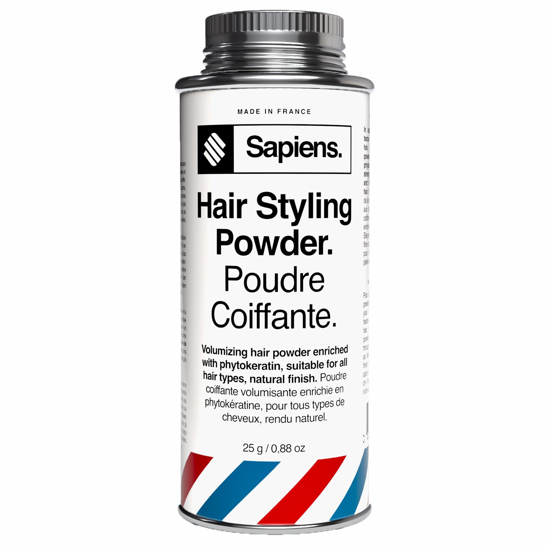BOOST YOUR STYLE WITH SAPIENS MEN'S STYLING POWDER - MADE IN FRANCE Discover our new styling powder! Carefully formulated in France with natural ingredients, this texturizing hair powder is the quick and effective solution for effortlessly adding volume, texture, and structure to your hairstyle. WHY CHOOSE OUR HAIR TEXTURE POWDER? Professional Results: Give your hairstyle a salon-worthy finish. Natural Effect: No visible residue, just a light texture and subtle volume. Easy to Apply: Sprinkle directly onto dry hair, style with your fingers, and you're done. Non-sticky: Easily washes out with shampoo. INGREDIENTS AND COMMITMENT Made in France, our texturizing hair powder is enriched with safe ingredients that respect your scalp. Perfect for everyday use. DIRECTIONS FOR USE 1. Sprinkle a small amount of powder directly onto your dry hair. 2. Work the powder through with your fingers to achieve the desired effect. 3. Adjust the amount for more volume or texture, according to your preferences. Embrace Sapiens styling powder and give your hair an impeccable style! HOW TO USE Apply a small amount of powder to the roots or areas where you want volume. Gently massage with your fingers and style as desired. SAFETY WARNING For external use only. Do not inhale. Do not swallow. Avoid contact with eyes. Keep out of reach of children. Store in a cool, dark place. See moreTested Approved by the Pros: Developed with professional hairdressers and barbers, it has been validated in salons for its performance, ease of use, and natural finish. No animal testing. ? Satisfaction Guaranteed: Buying online can raise doubts: fragrance, texture, hold… If our powder doesn't convince you, we'll give you a full refund, no questions asked. French Commitment Quality - 100 100 on Yuka: Formulated and manufactured in France, Sapiens styling powder meets the strictest quality standards. And for any questions, our customer service team, based in France, will respond within 24 hours. ? Invisible Residue-Free: Zero traces, zero residue. Unlike styling waxes, the powder remains imperceptible, is non-sticky, and blends perfectly into the hair for a light and clean style. ? Natural Matte Finish Thickening Effect: Its ultra-fine formula absorbs excess oil, providing an elegant matte finish. Perfect for fine or thinning hair, it visually thickens without making the style stiff. Men's Styling Powder: Instant Volume Texture: Our styling powder boosts volume upon application. It texturizes hair without weighing it down, for a customizable and natural style all day long, without a greasy or stiff feel.Sapiens Poudre pour cheveux volume 25 g – Finition mate naturelle – Poudre pour cheveux pour homme – Volume texture – Invisible sans résidus – Formule naturelle – Poudre coiffante pour cheveuxDESCRIPTION DU PRODUIT DESCRIPTION DU PRODUIT BOOSTEZ VOTRE STYLE AVEC LA POUDRE COIFFANTE HOMME SAPIENS - FABRIQUÉE EN FRANCE Découvrez notre nouvelle poudre coiffante ! Formulée avec soin en France à base d'ingrédients naturels, cette poudre texturisante pour cheveux est la solution rapide et efficace pour ajouter du volume, de la texture et de la structure à votre coiffure, sans effort. POURQUOI CHOISIR NOTRE POUDRE TEXTURE CHEVEUX ? Résultat Professionnel : Apportez une finition digne d'un coiffeur à votre coiffure. Effet Naturel : Aucun résidu visible, juste une texture légère et un volume subtil. Facile à Appliquer : Saupoudrez directement sur cheveux secs, coiffez avec les doigts, et le tour est joué. Ne colle pas : S'enlève facilement avec un simple shampoing. INGRÉDIENTS ET ENGAGEMENT Fabriquée en France, notre poudre texturisante cheveux est enrichie avec des ingrédients sûrs et respectueux de votre cuir chevelu. Parfaite pour un usage quotidien. INSTRUCTIONS D'UTILISATION 1. Saupoudrez une petite quantité de poudre directement sur vos cheveux secs. 2. Travaillez la matière avec vos doigts pour obtenir l'effet souhaité. 3. Ajustez la quantité pour plus de volume ou de texture selon vos préférences. Adoptez la poudre coiffante Sapiens et offrez à vos cheveux un style impeccable ! MODE D'EMPLOI Appliquez une petite quantité de poudre sur les racines ou les zones où vous voulez du volume. Massez doucement avec les doigts et coiffez à votre guise. AVERTISSEMENT DE SÉCURITÉ Usage externe. Ne pas inhaler. Ne pas avaler. Eviter le contact avec les yeux. Tenir hors de portée des enfants. Conserver dans un endroit frais à l'abri de la lumière. Voir plusTestée Approuvée par les Pros : Développée avec des coiffeurs et barbiers professionnels, elle a été validée en salon pour sa performance, sa facilité d'utilisation et son rendu naturel. Aucun test sur les animaux. ? Satisfaction Garantie : Acheter en ligne peut créer des doutes : parfum, texture, tenue… Si notre poudre ne vous convainc pas, on vous rembourse intégralement, sans poser de question. Engagement Qualité Française - 100 100 sur Yuka : Formulée et fabriquée en France, la poudre coiffante Sapiens respecte les normes de qualité les plus strictes. Et pour toute question, notre service client basé en France vous répond sous 24h. ? Invisible Sans Résidus : Zéro trace, zéro résidu. Contrairement aux cires coiffantes, la poudre reste imperceptible, ne colle pas et se fond parfaitement dans la chevelure pour un coiffage léger et propre. ? Finition Naturelle Mate Effet Densifiant : Sa formule ultra-fine absorbe l'excès de sébum, offrant une finition mate élégante. Parfaite pour les cheveux fins ou clairsemés, elle densifie visuellement sans figer la coiffure. Poudre Coiffante Homme Volume Texture Instantanés : Notre poudre coiffante booste le volume dès l'application. Elle texturise les cheveux sans les alourdir, pour un style modulable et naturel tout au long de la journée, sans effet gras ni cartonné.