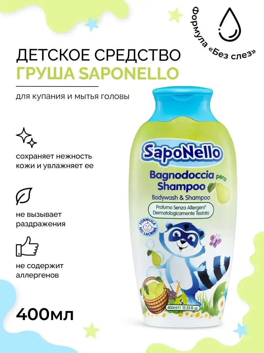 SapoNello Шампунь для волос и тела для детей Груша 0+ 400 мл