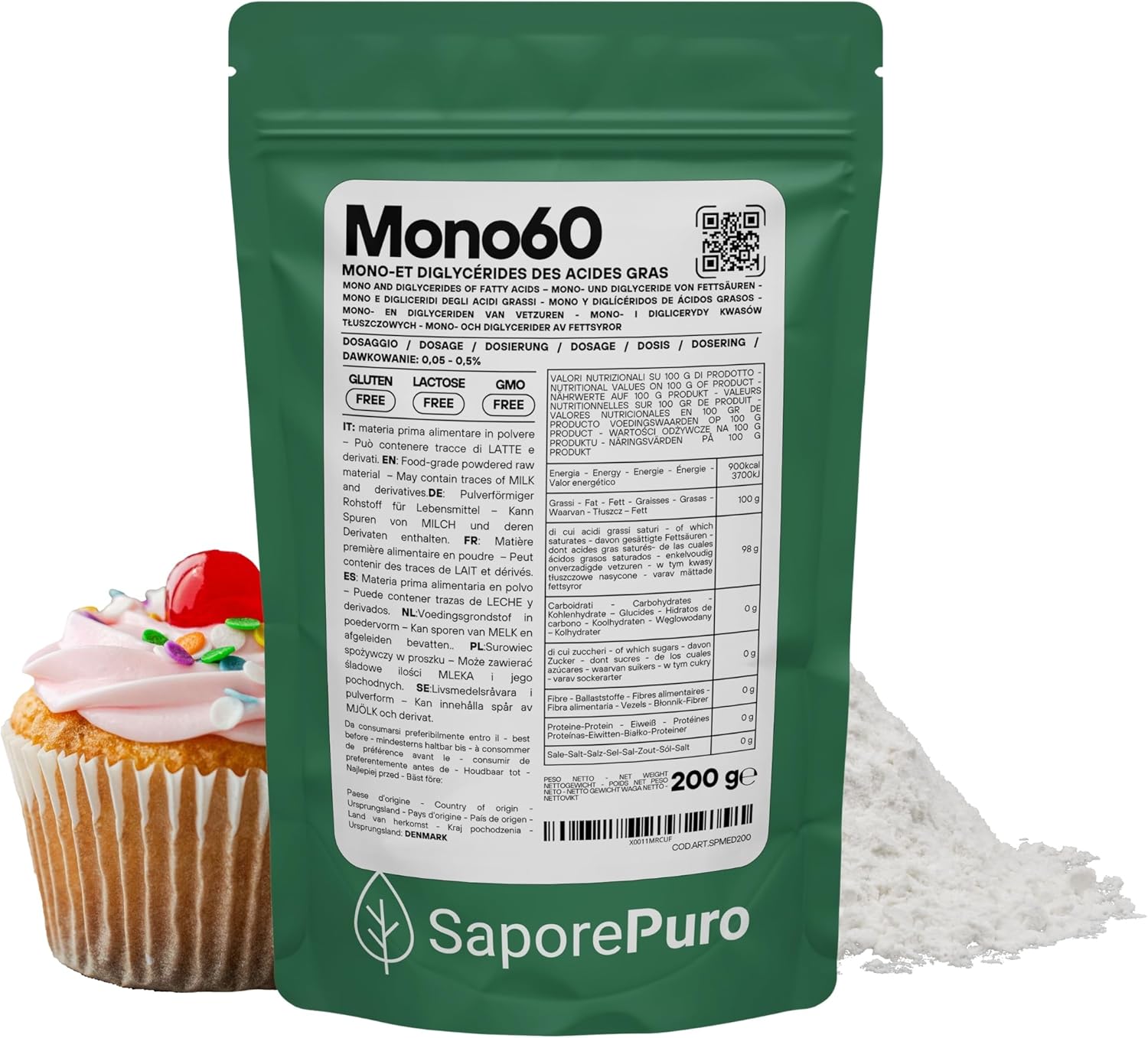 Saporepuro MONO 60 - Mono AND DIGLYCERIDES OF FATTY ACIDS 200 g - plant origin - ideal emulsifier for ice creams sorbets pastries