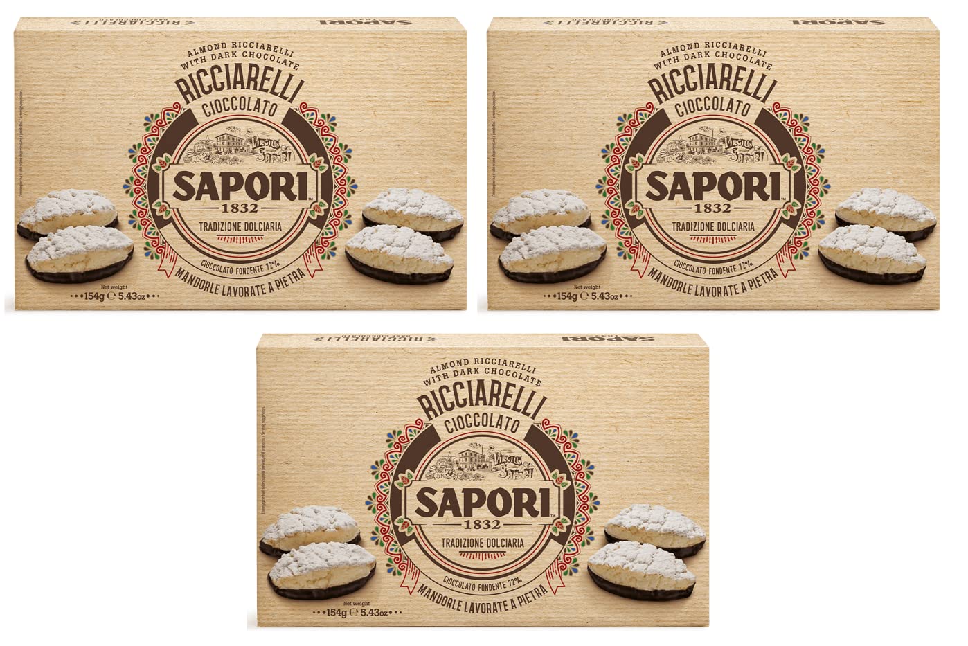 Riciarelli chocolate-covered almonds represent the perfect blend of sweet almond paste and a crunchy base of 72 dark chocolate. A unique taste arises from the harmony between the almonds, which are still slowly stone-ground, and the dark chocolate. These dark chocolate-covered almonds are perfect enjoyed on their own or paired with a Passito wine with hints of raspberry, black cherry, and cherry. Thanks to its rich flavor reminiscent of red fruit jam, it pairs beautifully with almond paste and dark chocolate. Ingredients: Sugar, almonds 36 , chocolate 10 (cocoa mass, sugar, low-fat cocoa powder, cocoa butter, emulsifier: sunflower lecithin, natural vanilla flavoring) - Soluble fiber. Chicory: fructose - powdered sugar 5.5 (sugar, corn starch) - Fresh. Free-range white meat. Chicken - Flavorings - Preservative: Sorbic acid - Raising agent: Ammonium bicarbonate - Salt. May contain wheat, milk, soy, and other nuts. Nutritional values per 100g: Energy 1933kJ 463kcal, Fat 24g, of which saturates 4.2g, Carbohydrate 48g, of which sugars 47g, Fiber 8.6g, Protein 9.4g, Salt 0.11g. INGREDIENTS Sugar, almonds 36 , chocolate 10 (cocoa mass, sugar, low-fat cocoa powder, cocoa butter, emulsifier: sunflower lecithin, natural vanilla flavoring) - chicory, soluble fiber: oligofructose - powdered sugar 5.5 (sugar, corn starch) - fresh free-range chicken protein - flavorings - preservative: sorbic acid - bedding: ammonium bicarbonate - salt. May contain wheat, milk, soy, and other tree nuts.3 x Sapori Ricciarelli alla Mandorla con Base di Cioccolato Pâte d'amande et base croustillante de chocolat noir 154 g chocolat noir 72DESCRIPTION DU PRODUIT DESCRIPTION DU PRODUIT Les amandes riciarelli à base de chocolat parlent de l'unification entre la pâte d'amande douce et la base croustillante de 72 de chocolat foncé. Un goût unique qui se produit de l'harmonie entre les amandes qui sont encore lentement broyées sur la pierre et le chocolat foncé. Les amandes riciarelli à base de chocolat foncé sont parfaites pour vous-même ou en combinaison avec un vin de passito avec une touche de framboise, de cerises noires et de cerises. Grâce à son goût enveloppant qui rappelle les arômes de la confiture aux fruits rouges, il se mariera parfaitement avec la pâte d'amande en combinaison avec du chocolat foncé. Ingrédients : sucre, amandes 36 , chocolat 10 (pâte de cacao, sucre, poudre de cacao faible en graisse, beurre de cacao, émulsifiant : lécithine de tournesol, arôme naturel de vanille) - Fibres solubles Chicorée : fructose - sucre en poudre 5,5 (sucre, amidon de maïs) - frais Blanc à roue libre Poulet - Arômes - Conservateur : Acide Sorbique - Levure : Bicarbonate d'ammonium - Sel Peut contenir du blé, du lait, du soja et d'autres fruits à coque. Valeurs pour 100 g : énergie 1933 kJ 463 calories, graisses 24 g, dont acides gras saturés 4,2 g, hydrate de charbon 48 g, dont sucre 47 g, fibres 8,6 g, protéine 9,4 g, sel 0,11 g. INGRÉDIENTS Sucre, amandes 36 , chocolat 10 (pâte de cacao, sucre, poudre de cacao faible en gras, beurre de cacao, émulsifiant : lécithine de tournesol, arôme naturel de vanille) - chicorée fibres solubles : oligofructose - sucre en poudre 5,5 (sucre , amidon de maïs) - protéines fraîches de poulets en libre circulation Nern - Arômes - Conservateur : Acide sorbique - Litière : hydrogénocarbonate d'ammonium - sel. Peut contenir du blé, du lait, du soja et d'autres fruits à coque.