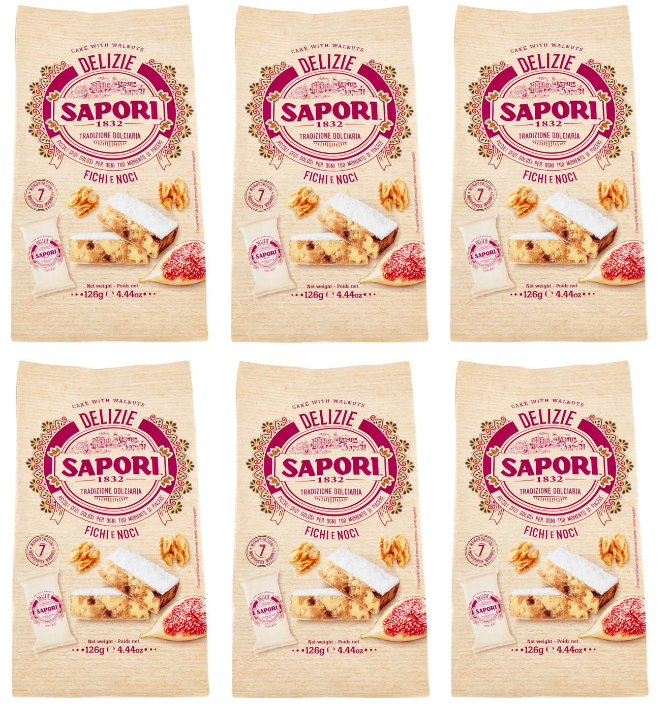 These fig and walnut delicacies represent the irresistible combination of the intense flavor of walnuts and the sweetness of dried figs, creating a small masterpiece to satisfy even the most discerning palates. At any time of day, you can treat yourself to a delicious and refined break that guarantees authentic flavor. These delightful treats can be enjoyed on any occasion and offer a moment of pure pleasure. The figs and walnuts in Le Delizie Toscane are excellent on their own or paired with a Passito di Petit Manseng, which has a taste of ripe fruit and honey, but with spicy and mineral notes that bring a floral freshness and are perfectly suited to the figs and walnuts. Sweet with figs and fruit - Ingredients: sugar, wheat flour, dried figs 16 , walnuts 16 , raisins 10 , glucose syrup, powdered sugar 9 (sugar, corn starch), hazelnuts 2 , rice flour, waffle coating 0.5 (potato starch, water). May contain soy and other nuts. Nutritional values per 100g: Energy 1773 kJ 421 calories, Fat 13g of which saturates 0.9g, Carbohydrate 70g of which sugars 57g, Fiber 3g, Protein 4.6g, Salt 0.01g. INGREDIENTS Sugar, wheat flour, dried figs 16 , walnuts 16 , raisins 10 , glucose-fructose syrup, powdered sugar 9 (sugar, corn starch), hazelnuts 2 , rice flour, waffle starch 0.5 (potato starch, water). May contain soy and other tree nuts.Lot de 6 produits de confiserie Sapori Delizie Fichi e Noci avec figues et noix 126 g sachets avec 7 portions individuelles Spécialités de Noël italiennesDESCRIPTION DU PRODUIT DESCRIPTION DU PRODUIT Les délices de figue et de noyer représentent le lien irrésistible entre le goût intense des noix et la douceur des figues séchées, créant une petite excellence pour satisfaire les goûts les plus chaleureux. À tout moment de la journée, vous pouvez vous offrir une pause délicieuse et raffinée qui garantit l'authenticité du goût. Ces délicieuses friandises peuvent être dégustées en toute occasion et offrent un moment de pur plaisir. Les figues et les noix Le Delizie Toscane sont excellentes seules ou en combinaison avec un Passito di Petit Manseng avec un goût de fruits mûres et de miel, mais avec des notes épicées et minérales qui apportent une fraîcheur florale et parfaitement adaptées aux figues et aux noix. Sucré avec des figues et des fruits - Ingrédients : sucre, farine de blé, figues séchées 16 , noix 16 , raisins 10 , sirop de glucose, sucre en poudre 9 (sucre, amidon de maïs), noisettes 2 , farine de riz, épaisseur gaufrée 0,5 . (fécule de pomme de terre, l'eau). Peut contenir du soja et d'autres fruits à coque. Valeurs pour 100 g d'énergie 1773 kJ 421 calories, graisses 13 g dont acides gras saturés 0,9 g - Hydrate de carbone 70 g dont sucre 57 g - Fibres 3 g - Protéine 4,6 g Sel 0,01 g. INGRÉDIENTS Sucre, farine de blé, figues séchées 16 , noix 16 , raisins secs 10 , sirop de glucose-fructose, sucre en poudre 9 (sucre, amidon de maïs), noisettes 2 , farine de riz, fécule de gaufre 0,5 (amidon de pomme de terre , eau). Peut contenir du soja et d'autres fruits à coque.