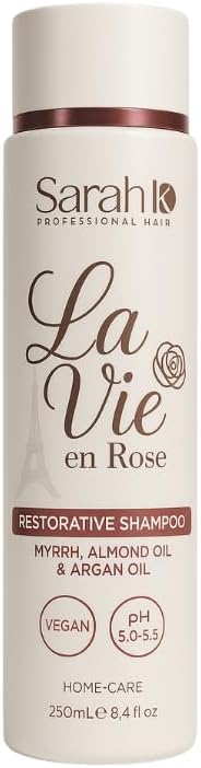 Sarah K La Vie en Rose Shampoo is the ultimate solution for damaged, brittle, and thinning hair. Its gentle formula cleanses deeply without stripping moisture, helping restore health and vitality to your strands. Enriched with myrrh oil, it strengthens hair, promotes shine, and combats dandruff. Sweet almond oil nourishes and repairs, reducing dry ends and adding softness and shine. Arginine fortifies hair and promotes healthy growth while reducing hair loss. This shampoo maintains moisture, providing a soft, manageable finish, and improving overall hair texture with every use. Ideal for all hair types needing special care.