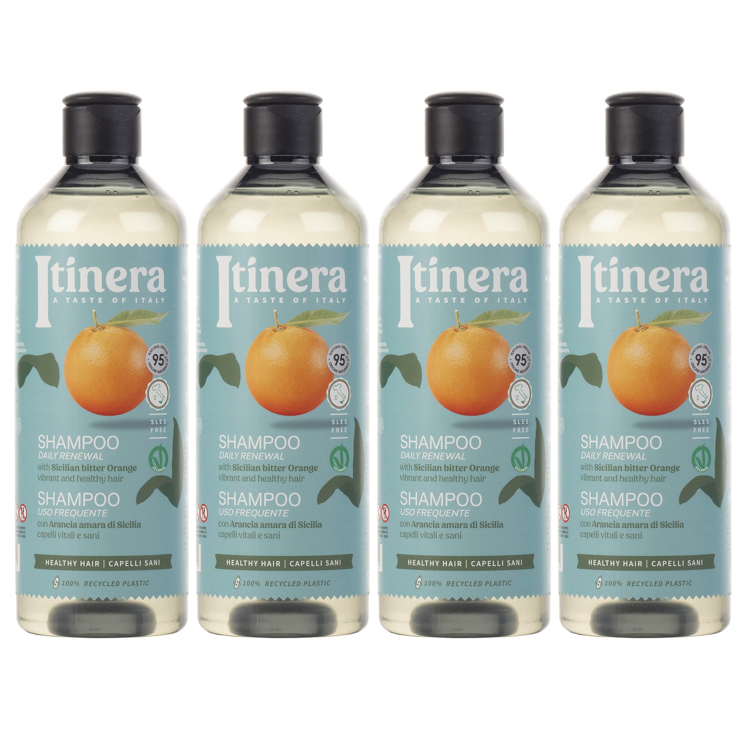 Why is it worth it? Bitter orange grows and ripens in the unique Mediterranean climate, characterized by lush, fragrant, and colorful vegetation. Its properties make it an excellent refreshing and energizing skincare product. The color is a natural characteristic of the product, and any changes in color and scent do not alter the product's properties, as they are due to the presence of natural organic substances. Lemon, fresh, aromatic, woody. An extraordinary, fresh, and energizing fragrance. Invigorating like a beautiful winter sky, euphorically light. Energizes and awakens memories of long, fragrant nights. Suitable for vegans. Contains no SLS or SLES.The bottle is made from recycled PET, and the packaging is recyclable. Made and packaged in Italy. Its naturally fresh scent comes from a blend of intense yet delicately fragranced citrus fruits that draw their strength from the Sicilian soil. Its formula, with 95 natural ingredients, leaves hair visibly healthier without weighing it down. Extracts from the peel of this delicious orange are used with plant-based cleansing agents in our Daily Renewal Shampoo to gently cleanse even the most sensitive skin. Daily Renewal Shampoo with Sicilian bitter orange for vibrant, healthy hair.ITINERA Shampooing Renouvellement des Cheveux à l'Orange Amère Sicilienne 95 d'Ingrédients Naturels 370ml Lot de 4DESCRIPTION DU PRODUIT Pourquoi en vaut la peine ? L'orange amère pousse et mûrit dans le climat unique de la Méditerranée, caractérisé par une végétation luxuriante, parfumée et colorée. Ses propriétés en font un excellent soin rafraîchissant et énergisant pour la peau. La couleur est une caractéristique naturelle du produit, et les éventuels changements de couleur et d'odeur ne modifient pas les propriétés de ce produit car ils sont dus à la présence de substances organiques naturelles. Citron, frais, arôme, boisé. Parfum extraordinaire, frais et énergisant. Vivifiant comme un beau ciel d'hiver, euphoriquement léger. Énergie et éveille les souvenirs de longues nuits parfumées. » Adapté aux végétaliens. Ne contient ni SLS ni SLES.La bouteille est fabriquée en PET recyclé, l'emballage est recyclable. Fabriqué et emballé en Italie. Son parfum naturellement frais est dû à un mélange d'agrumes intenses mais délicatement parfumés qui puisent leur force dans le sol sicilien. Sa formule à 95 d'ingrédients naturels rend les cheveux visiblement plus sains et ne les alourdit pas. Les extraits de la peau de cette délicieuse orange sont utilisés avec des substances nettoyantes végétales dans notre shampooing Daily Renewal pour nettoyer en douceur même les peaux les plus sensibles. Shampooing de renouvellement quotidien à l'orange amère de Sicile pour des cheveux vifs et sains.