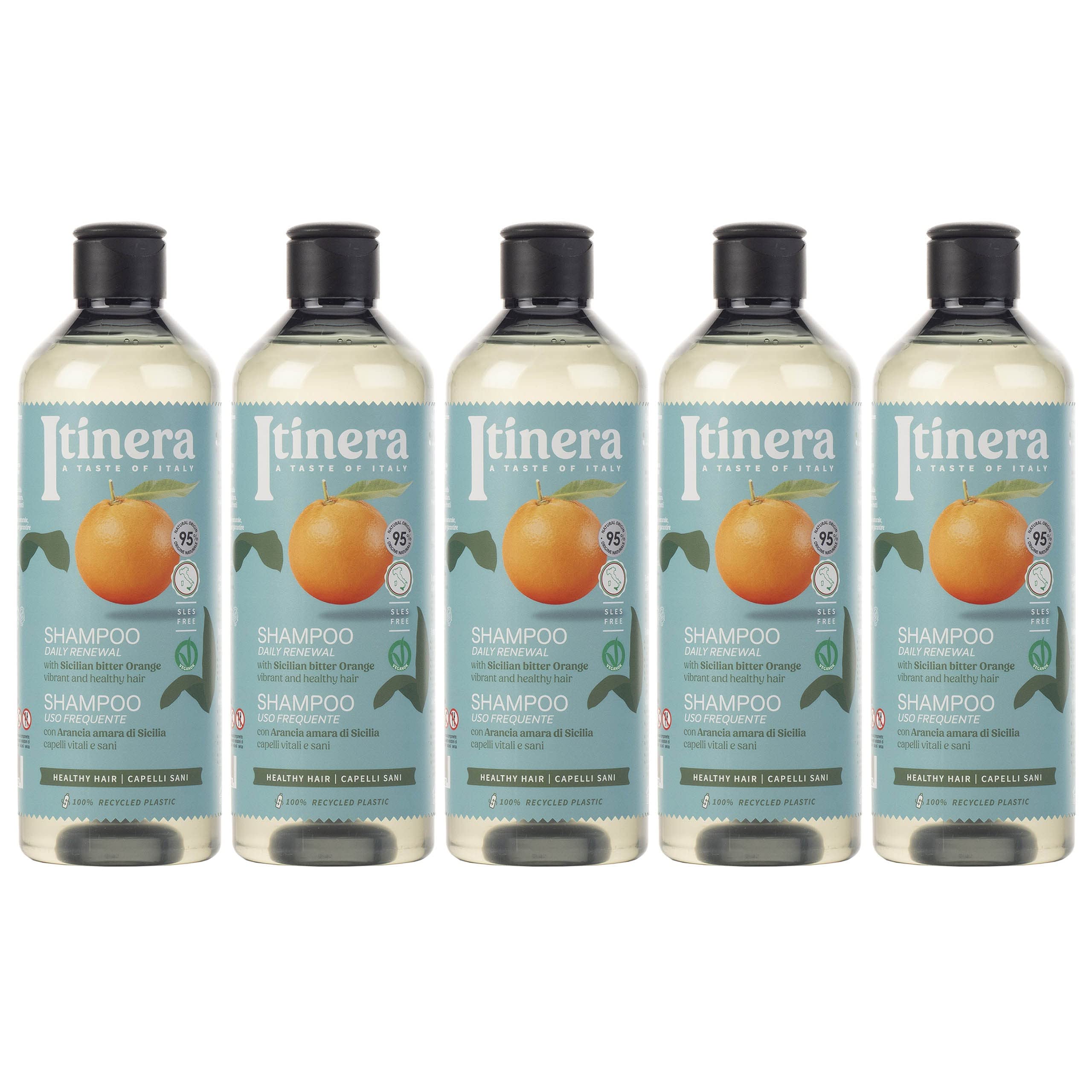 Why is it worth it? Bitter orange grows and ripens in the unique Mediterranean climate, characterized by lush, fragrant, and colorful vegetation. Its properties make it an excellent refreshing and energizing skincare product. The color is a natural characteristic of the product, and any changes in color and scent do not alter the product's properties, as they are due to the presence of natural organic substances. Lemon, fresh, aromatic, woody. An extraordinary, fresh, and energizing fragrance. Invigorating like a beautiful winter sky, euphorically light. Energizes and awakens memories of long, fragrant nights. Suitable for vegans. Contains no SLS or SLES.The bottle is made from recycled PET, and the packaging is recyclable. Made and packaged in Italy. Its naturally fresh scent comes from a blend of intense yet delicately fragranced citrus fruits that draw their strength from the Sicilian soil. Its formula, with 95 natural ingredients, leaves hair visibly healthier without weighing it down. Extracts from the peel of this delicious orange are used with plant-based cleansing agents in our Daily Renewal Shampoo to gently cleanse even the most sensitive skin. Daily Renewal Shampoo with Sicilian bitter orange for vibrant, healthy hair.ITINERA Shampooing Renouvellement des Cheveux à l'Orange Amère de Sicile 95 d'Ingrédients Naturels 370ml Lot de 5DESCRIPTION DU PRODUIT Pourquoi en vaut la peine ? L'orange amère pousse et mûrit dans le climat unique de la Méditerranée, caractérisé par une végétation luxuriante, parfumée et colorée. Ses propriétés en font un excellent soin rafraîchissant et énergisant pour la peau. La couleur est une caractéristique naturelle du produit, et les éventuels changements de couleur et d'odeur ne modifient pas les propriétés de ce produit car ils sont dus à la présence de substances organiques naturelles. Citron, frais, arôme, boisé. Parfum extraordinaire, frais et énergisant. Vivifiant comme un beau ciel d'hiver, euphoriquement léger. Énergie et éveille les souvenirs de longues nuits parfumées. » Adapté aux végétaliens. Ne contient ni SLS ni SLES.La bouteille est fabriquée en PET recyclé, l'emballage est recyclable. Fabriqué et emballé en Italie. Son parfum naturellement frais est dû à un mélange d'agrumes intenses mais délicatement parfumés qui puisent leur force dans le sol sicilien. Sa formule à 95 d'ingrédients naturels rend les cheveux visiblement plus sains et ne les alourdit pas. Les extraits de la peau de cette délicieuse orange sont utilisés avec des substances nettoyantes végétales dans notre shampooing Daily Renewal pour nettoyer en douceur même les peaux les plus sensibles. Shampooing de renouvellement quotidien à l'orange amère de Sicile pour des cheveux vifs et sains.