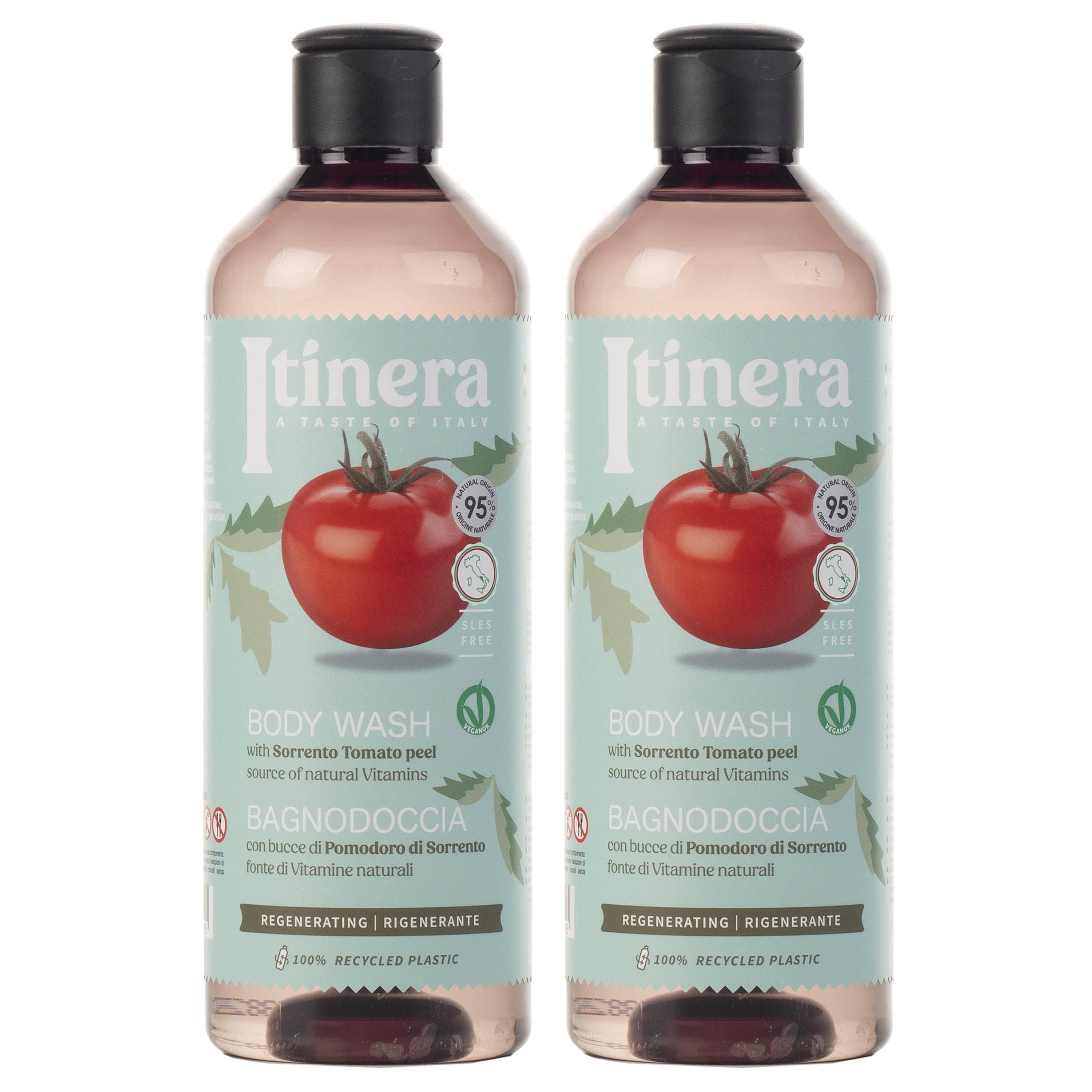 ITINERA - Regenererende bodywash met tomaat uit Sorrento, 95 natuurlijke ingrediënten, 370 ml 2 stuks