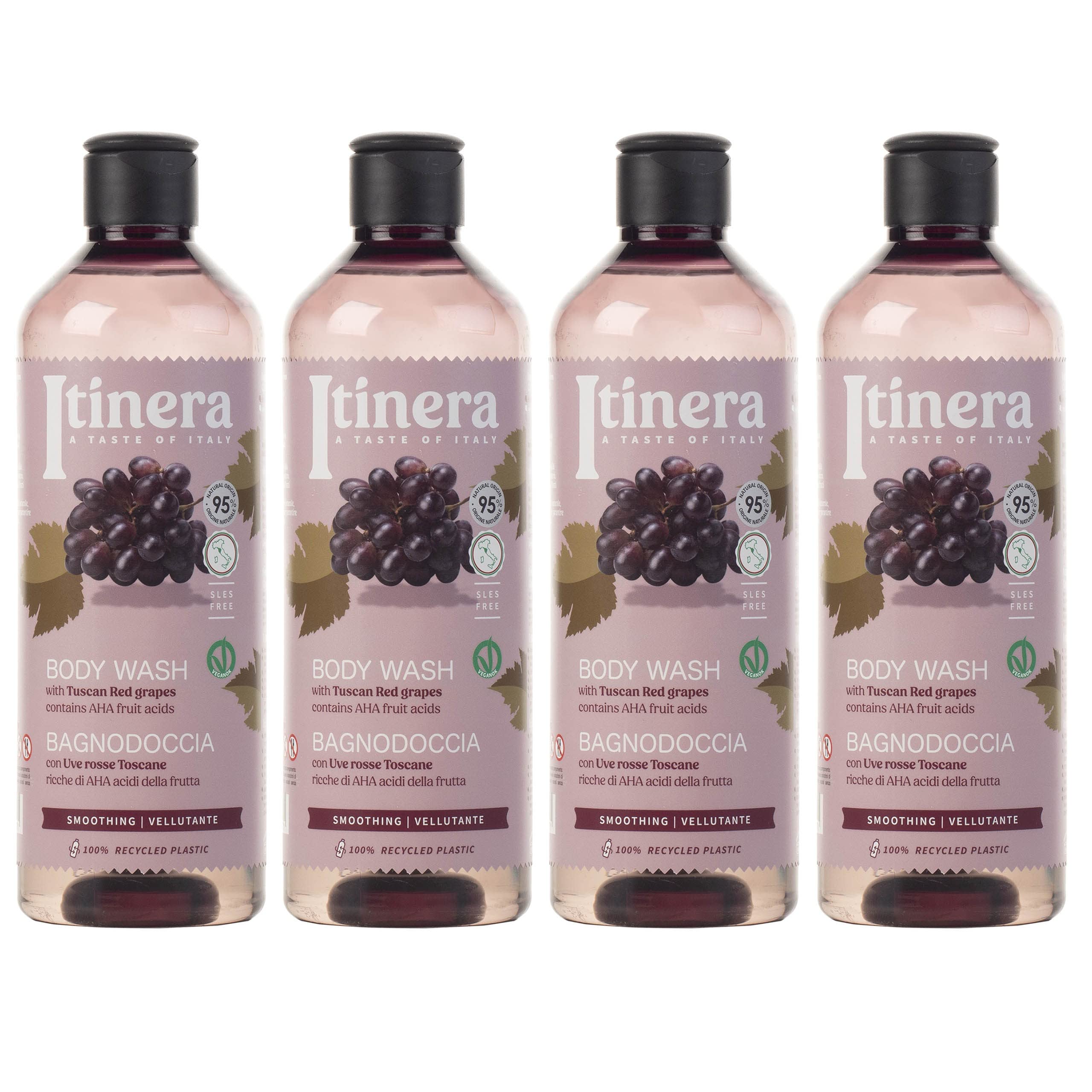 ITINERA - Gladmakende Body Wash met Toscaanse rode druiven, 95 natuurlijke ingrediënten, 370 ml 4 stuks