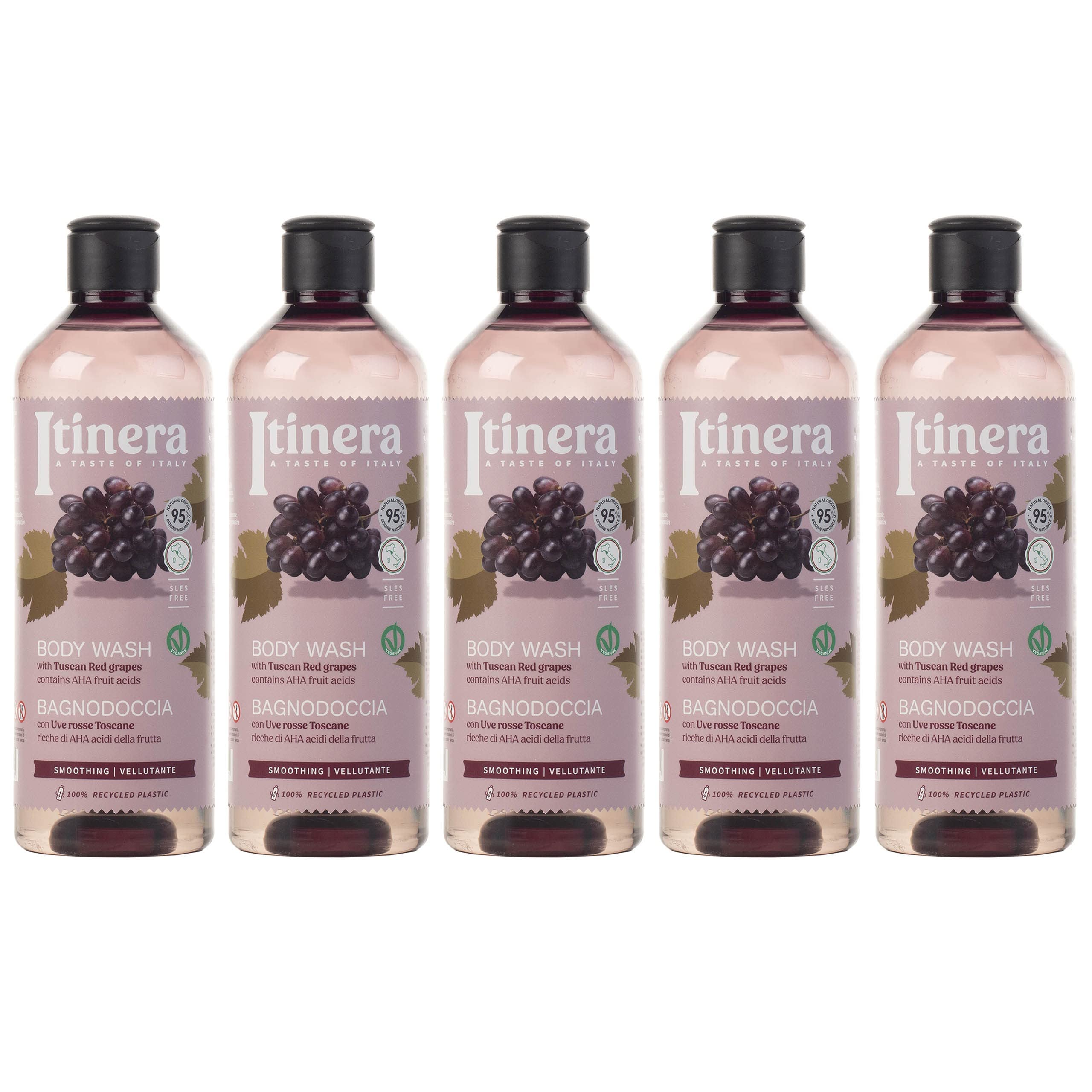 ITINERA - Gladmakende Body Wash met Toscaanse rode druiven, 95 natuurlijke ingrediënten, 370 ml 5 stuks