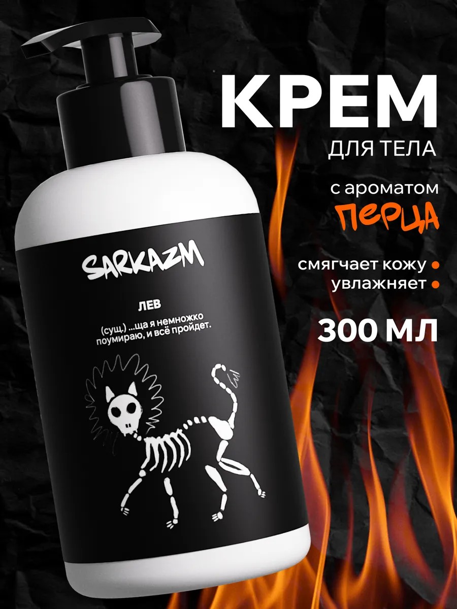 SARKAZM Lion Moisturizing Body Cream is a universal skin care product for your face, hands, and body. Its rich formula, enriched with jojoba oil, shea butter, sweet almond oil, vitamins A and E, and D-panthenol, deeply hydrates, softens, and nourishes the skin. The cream is suitable for all skin types, including oily, normal, and sensitive skin. The cream's light texture is quickly absorbed without leaving a sticky feeling. Lion is an ideal choice for daily skin care at any time of the day. Its unique Black Pepper and Tonka Bean fragrance will envelop you in a subtle and sophisticated aroma, creating a feeling of sophistication and comfort. The cream does not contain an SPF filter, so it can be used both day and night. Thanks to natural ingredients, Lion cream Gently cares for your skin, leaving it soft, smooth and radiant.