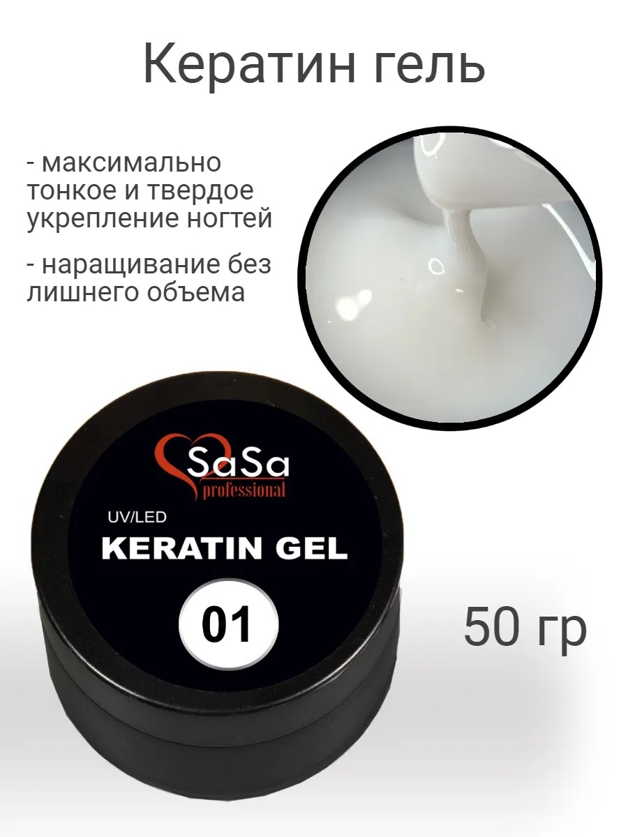 Кератин гель - это новое слово в нейл индустрии, буквально прорыв, позволяющий создавать максимально тонкие, приближенные к натуральной архитектуре, очень прочные и твердые наращенные ногти. А также укреплять натуральную ногтевую пластину без утяжеления, ненужной толщины, особенно для ноготков, правильной и красивой формы от природы! KERATIN GEL SaSaProfessional - гипоаллергенный бескислотный гель для наращивания и укрепления ногтей. Очень удобная податливая жидкая консистенция! Используется с гибкой подложкой из эластичных баз, таких как LUX BASE, RUBBER BASE, LUXBASEELASTIC SaSaProfessional. Большой выбор молочных, розовых, нюдовых и ярких оттенков. Можно использовать как основу под гель-лак, камуфляж для французского маникюра ( для френча ), нюдовый маникюр. Большой экономичный объем 50 грамм.