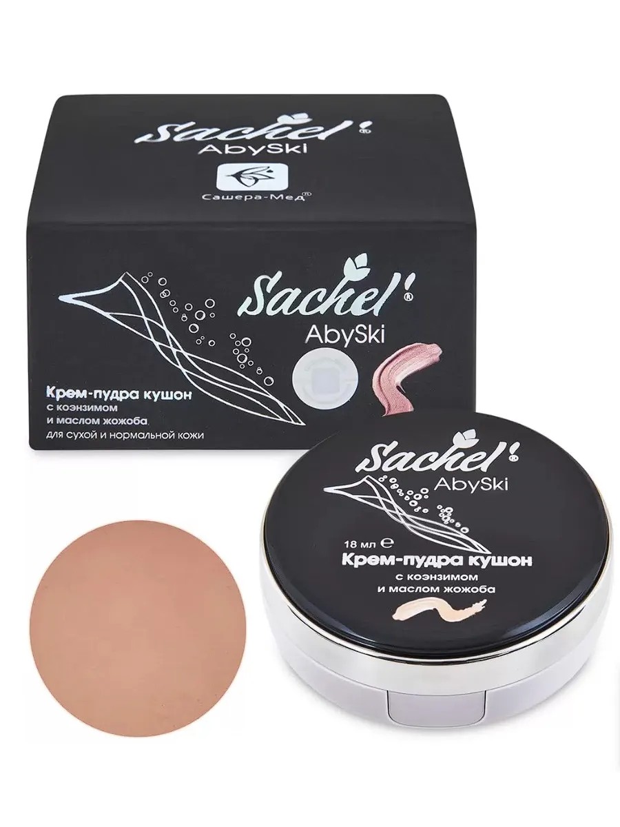 Sachel cushion cream-powder with coenzyme and jojoba oil provides a cosmetic smoothing effect and a restorative effect on all skin structures, is suitable for any makeup and skin tone, adapts to the individual characteristics of the skin, has a multifaceted effect: