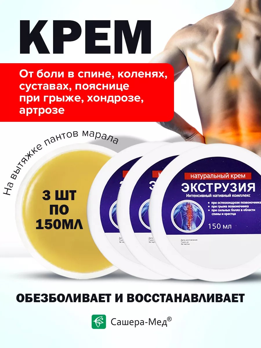 Растительный экструзия крем с быстрым обезболивающим эффектом, на основе пантов марала и сабельника, создан облегчить состояние при межпозвоночная грыже, остеохондрозе и других опорномышечных забрлеваниях. Это мазь от боли в спине, пояснице, мазь для суставов, от грыжи позвоночника. Глубоко через эпидермис крем проникает к хрящевым тканям и устраняет позвоночник, суставы, колени. Имея сложный состав компонентов используется как ранозаживляющая мазь, устраняет ушибы, гематомы, отеки.