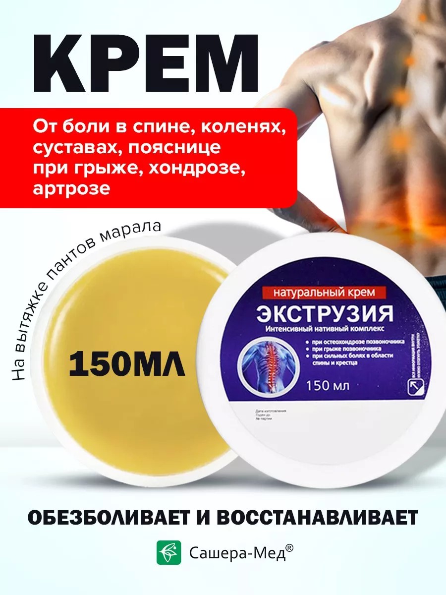 Растительный экструзия крем с быстрым обезболивающим эффектом, на основе пантов марала и сабельника, создан облегчить состояние при межпозвоночная грыже, остеохондрозе и других опорномышечных забрлеваниях. Это мазь от боли в спине, пояснице, мазь для суставов, от грыжи позвоночника. Глубоко через эпидермис крем проникает к хрящевым тканям и устраняет позвоночник, суставы, колени. Имея сложный состав компонентов используется как ранозаживляющая мазь, устраняет ушибы, гематомы, отеки.