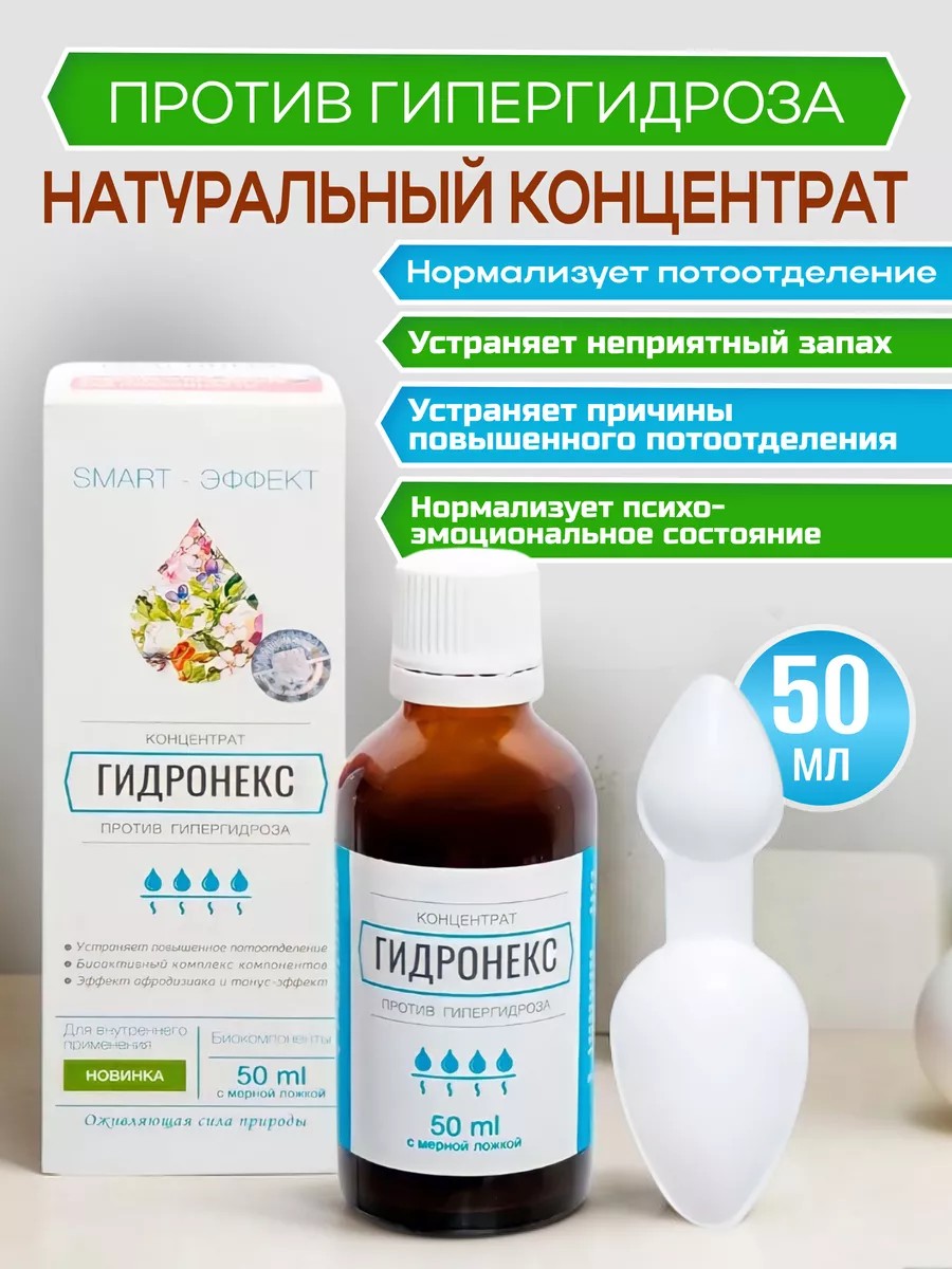 The bioactive native complex Hydronex against hyperhidrosis has a multifaceted natural regulatory effect on the functions and condition of eight systems of the body - nervous, digestive, cardiovascular, endocrine, musculoskeletal, immune, respiratory, genitourinary, helps restore the balance of metabolic processes, metabolism, synthesis of hormones, vitamins and amino acids, transmission of nerve impulses, control of the cellular population of healthy and pathogenic cells, self-cleaning, excretion of metabolic products, tissue regeneration.
