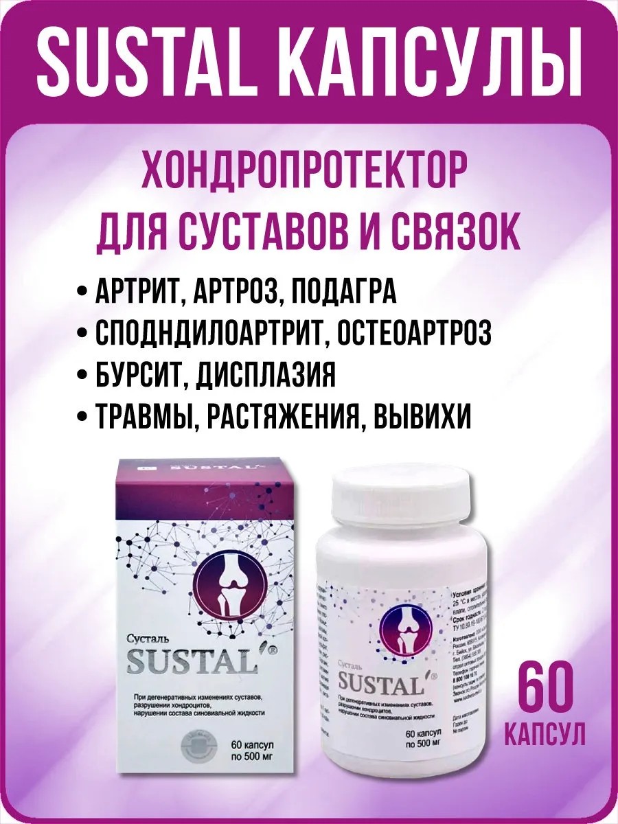 Сусталь SUSTAL поставляется в форме 60 капсул по 500мг, и является вашим надежным партнером на пути к здоровым, сильным и подвижным суставам.