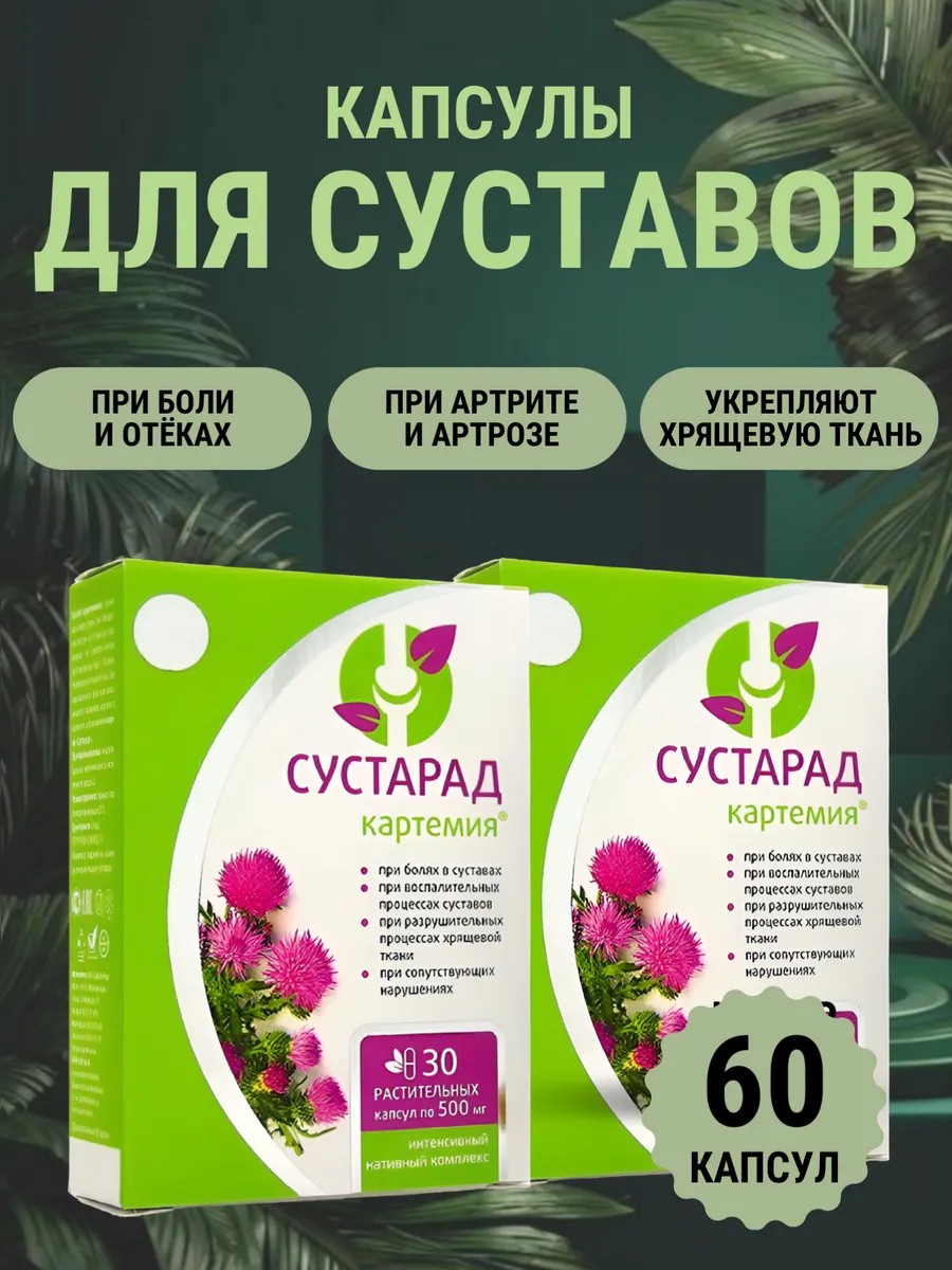 Картемия сустарад от компании сашера мед - это инновационный биокомплекс в капсулах для укрепления и защиты суставов, связок и сухожилий. Натуральный состав препарата обеспечивает полное комплексное воздействие - снижает боли и воспаление, увеличивает подвижность, убирает скованность, способствует восстановлению хрящей и усиливает сопротивляемость суставов к физическим нагрузкам. Ключевыми элементами алтайского средства являются экстракты каремии, сабельника, гинкго билоба и панты марала. Эти ингредиенты известны своими сильными противовоспалительными, противоинфекционными и восстановительными свойствами.