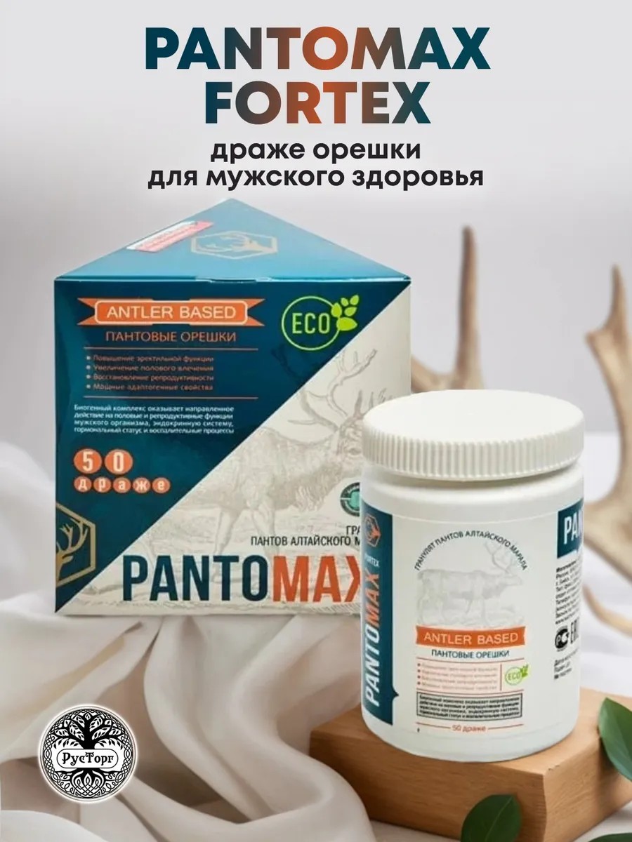 PANTOMAX Fortex (Пантомакс Фортекс) это биогенный продукт на основе гранулята пантов алтайского марала, обогащённый микросферами концентратов активных структур растений и природных компонентов, направленный на регуляцию функций и состояния органов мочеполовой, эндокринной, нервной системы мужчин, нормализацию эректильной функции, восстановление биохимического равновесия синтеза гормонов и функций органов репродуктивной системы.Основные действия биогенного комплекса:устойчивое повышение эректильной функции; повышение полового влечения; стабилизация половых функций мужского организма; устранение эректильной дисфункции; восстановление функции репродукции при бесплодии; улучшение подвижности эякулята; нормализация синтеза тестостерона, регуляция гормонального фона; устранение воспалительного процесса предстательной железы и мочевой системы; устранение гиперплазии предстательной железы; повышение физической выносливости; повышение умственной активности; быстрое восстановление после физических и психоэмоциональных нагрузок; снижение веса и лишней жировой массы; коррекция рельефа фигуры, устранение складок и обвисаний; устранение бессонницы, подавленности, депрессии; оказание мощного адаптогенного действия.Дополнительные действия биогенного комплекса:нормализация давления;улучшение мозгового кровообращения, предотвращение гипоксии, повышение памяти и умственной активности; устранение атеросклеротических изменений сосудов; регуляция сердечного ритма; восстановление зрения; устранение возрастных изменений, повышение общего тонуса организма, омоложение, увеличение популяции здоровых молодых клеток органов и тканей; нормализация обменных процессов; предотвращение воспалительного процесса поджелудочной железы; устранение атрофии пищеварительных органов; обеспечение поступления биоактивной формы белков, жирорастворимых витаминов к органам и тканям; устранение изменений нейропроцессов (Паркинсона, Альцгеймера); предупреждение изменений костной ткани и суставов; устранение хронических воспалительных процессов; устранение грибковых процессов; нормализация состояния кожи, восстановление защитных функций кожи; устранение алопеции; повышение иммунного ответа организма на внешние и внутренние неблагоприятные факторы; восстановление организма после операционных вмешательств и травм; повышение регенерации повреждённых тканей; ускорение регенерации костной ткани при переломах; снижение токсического действия алкоголя на организм; нормализация состава крови; проявление активности в отношении вируса туба; положительное действие при герпесвирусной инфекции, венерических процессах; положительное действие при онкопроцессах.Способ применения: принимать по 1 орешку за 30 мин до еды 3 раза в день, разжёвывая и запивая водой. Курс – 21 день. Продукт не рекомендуется детям до 16 лет. Возможен приём в подростковом возрасте с 14 лет при отставании в половом, физическом или умственном развитии – по 1 орешку 1 раз в день за 30 мин до еды в первой половине дня.