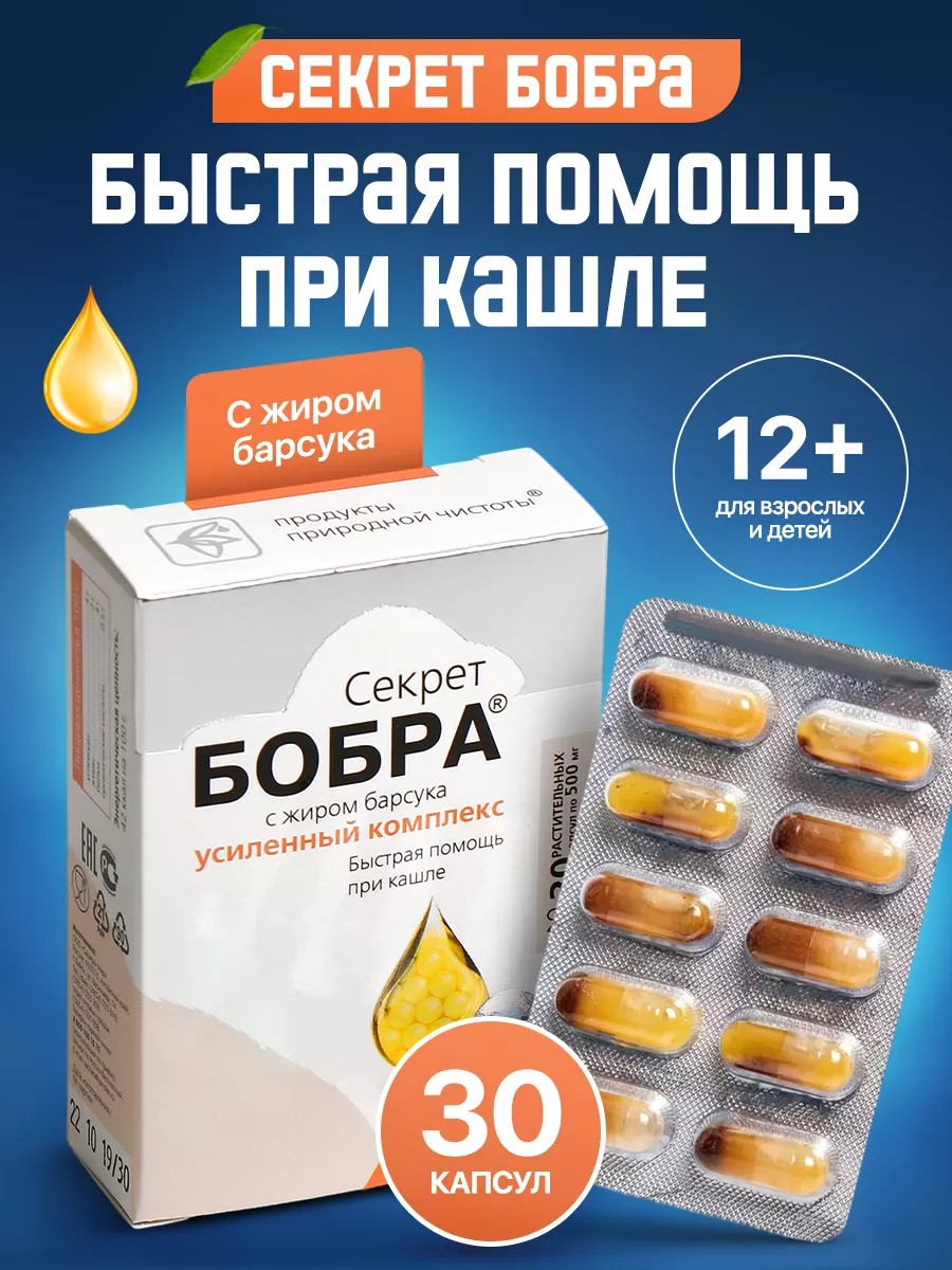 Секрет бобра с жиром барсука в капсулах от компании Сашера Мед. Быстрая помощь при кашле — это гармоничное сочетание природных компонентов из самого сердца Алтая – уникального секрета «бобровая струя» (мускус, кастореум) железы речного бобра, барсучьего жира и перги пчелиной; обладает мощным лечебно-профилактическим действием, направленным на эффективное улучшение состояния при сильном кашле, трахеитах, бронхитах, бронхопневмонии, некоторых видах астмы. Барсучий жир – интенсивное средство для быстрой и эффективной помощи при кашле различного происхождения, включая кашель курильщика, трахеитах, бронхитах, бронхопневмонии. Эффективный как и Бобродок. Барсучий жир обладает общеукрепляющим, противовоспалительным, иммуностимулирующим и антиатерогенным действием, ускоряет процессы восстановления тканей. Кашель доставляет много неприятных моментов, т.к. возникают постоянные позывы прочистить дыхательные пути, но отхождения мокрот не происходит и они только травмируются. Капсулы с жиром барсука направлены на успокоение кашлевого центра и на то, чтобы помочь ему трансформироваться во влажный, при котором слизь легко выводится наружу. Эффективность барсучьего жира в устранении патологических процессов в слизистой бронхов, скопившейся слизи, вызывающей судорожные приступы кашля. Капсулы обладают быстрой усвояемостью; природное средство облегчает состояние при простуде, гриппе, ОРВИ, ОРЗ, бронхите, пневмонии, фарингите, ларингите, трахеите, стоматите; обладает противовоспалительным, болеутоляющим действиями, положительно влияет на бронхолегочную систему, уничтожает вирусы и болезнетворные бактерии, стимулирует иммунную систему. Капсулы от кашля для взрослых эффективны при инфицировании вирусами дыхательных путей; быстро устраняет сухой и влажный кашель, даже очень сильный (противокашлевое и бронхолитическое действие). Капсулы от кашля содержат в себе уникальный сбалансированный состав из натуральных витаминов и микроэлементов для детей, который не заменит ни один препарат. Так же секрет бобра рекомендуется в качестве дополнительного источника ПНЖК, Омега 3 и Омега 6, витамина А и витамина Е Отличный подарок для самых близких! Для мамы бабушки, для малыша, для детей. Подходит от простуды детям. сок пихты сибирской, комплекс натуральных витаминов, лечение ЖКТ, пихтовый хлорофилл, жидкий противовирусный препарат для иммунитета, средство от простуды, от кашля, сибирское здоровье. Комплекс для укрепления иммунитета взрослым и детям. Здоровое и правильное питание. Чай, сбор, бальзам для иммунитета. Средство от простуды снимает раздражение в горле, уменьшают кашель и делают ваше состояние более комфортным во время болезни. Это не только средство для лечения симптомов простуды, но и мощный иммуномодулятор.Коклюш пневмония Отхаркивающее средство разжижение мокроты Мукалтин исландский мох корень солодки микстура от кашля Если вы хотите избежать простуды, симптомов простудных заболеваний, гриппа и сопутствующих им проблем, он станет вашим надежным помощником.