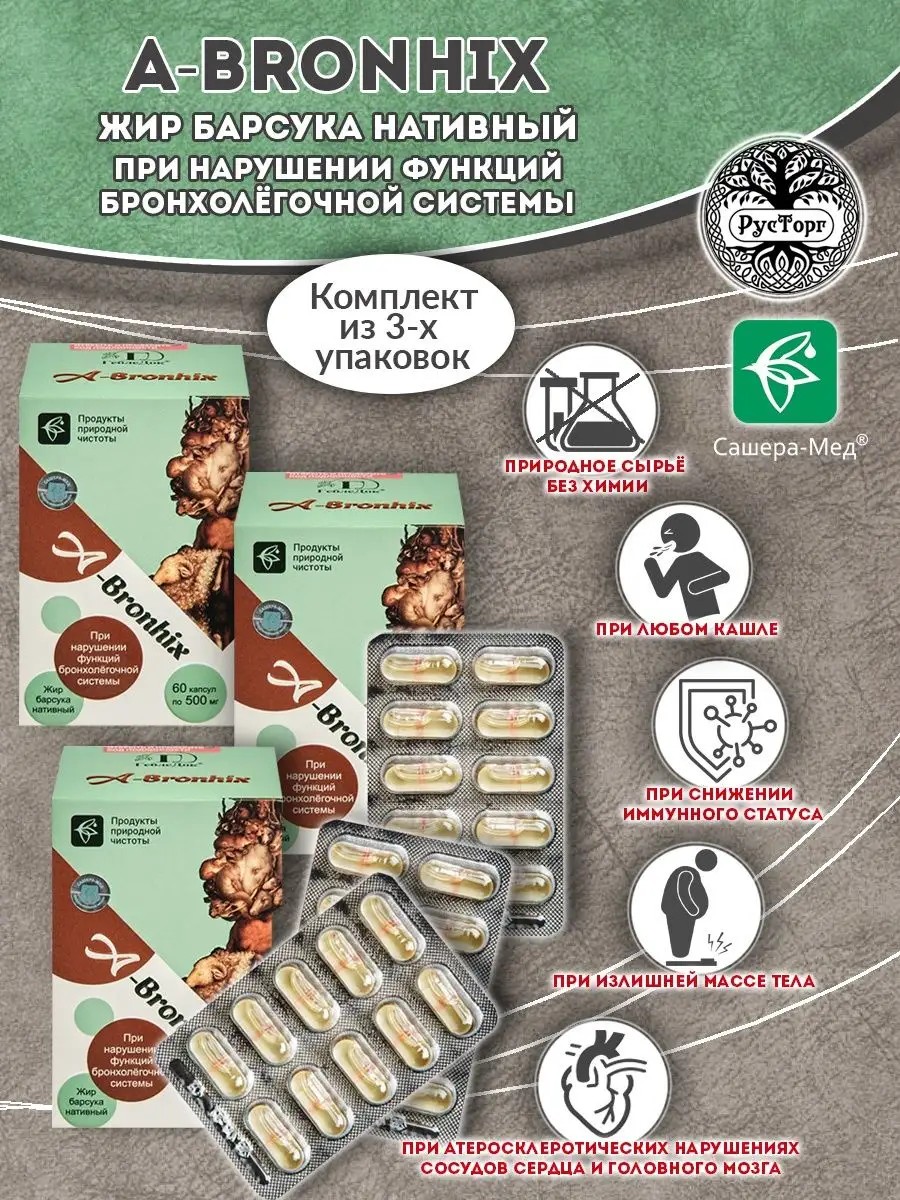 | Type of food supplement | immunity; for the bronchi; Badger fat |