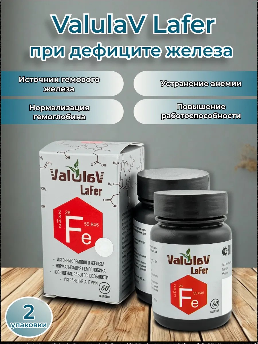 Valulav LaFer (ЛяФер) – органический комплекс на основе эссенциальной формулы нативных источников гемового микроэлемента железа в биодоступной усваиваемой форме, обогащённой нативным витамином С для улучшения усвоения микроэлемента железа.
